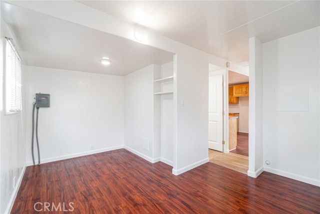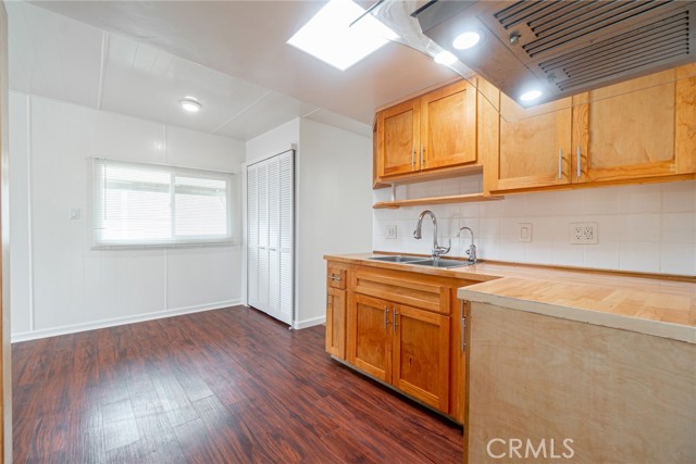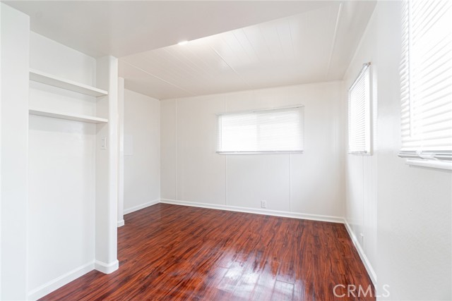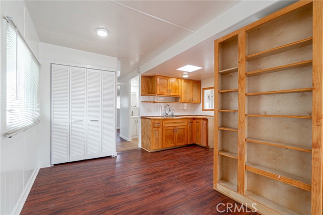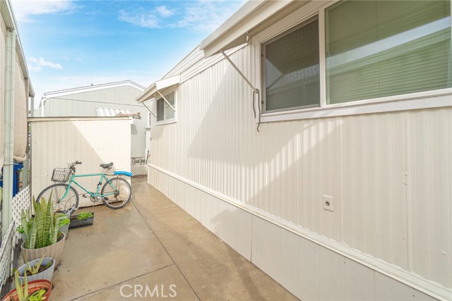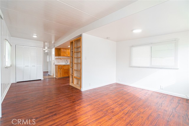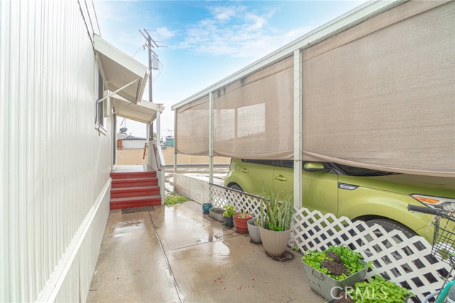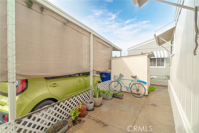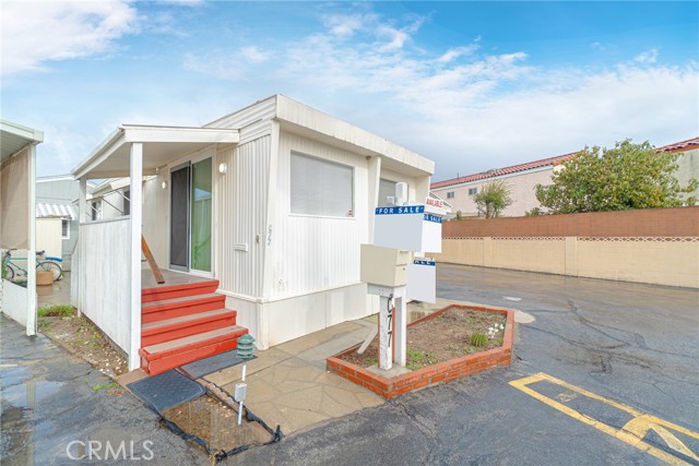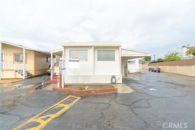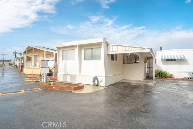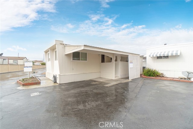Senior Park 55 years old and older. Light and bright 1 bedroom, 1 bath, kitchen, dining area, living room, 555 square feet of living space with outdoor covered sitting area, one car covered parking space and shed. This home has laminate flooring and Tile. The bathroom has a walk-in jacuzzi bath/shower. New furnace has been installed. Seller will give credit for purchase of appliances for Buyer to install a free standing range/oven and refrigerator. The park amenities include a clubhouse, outdoor swimming pool, laundry facility, and guest parking. Close to freeways, shopping, entertainment, restaurants, beaches and much more. Move in Ready, Turnkey. Corner Unit, Quiet. Come see!