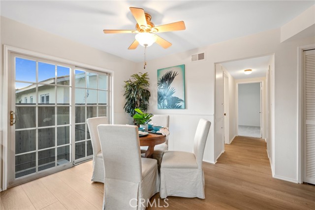 This spacious updated home on a quiet street in the sought-after Torrance area with award-winning schools has a very welcoming open floor plan featuring a full formal dining room, a large step-down living room with a fireplace, and beautiful Andersen wood sliders that open to a large manicured yard, with mature trees and lovely iceberg rose bushes. Walk through the front door and you will enjoy the multiple updated dual-paned windows that provide an abundance of natural light, along with the smooth ceilings, freshly painted interior, and new quality laminate flooring and carpet throughout. The well-designed layout allows for privacy as the master suite is on one side and the two additional spacious bedrooms and hall bath are on the other. Granite countertops and plenty of cabinetry and counter space make the large kitchen functional as well as another great feature of this home. The kitchen also has a large eating area with wainscoting and an additional wood slider that provides another access to the yard and side entrance to the attached two-car garage. The laundry is tucked away in its own closet in a most convenient location off the kitchen. This well cared for home is the one you have been waiting for. Come see for yourself how wonderful it is!