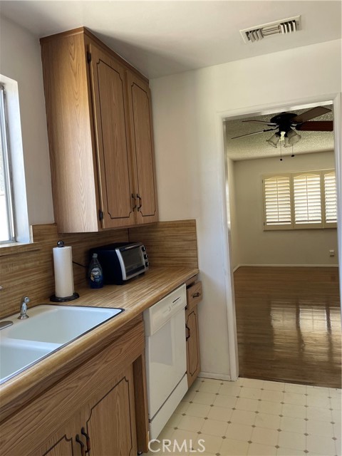 First time on the market!!!! Very spacious and bright home for a first time buyer. Great family neighborhood. Freshly painted interior and revarnished wood floors. Good size living room with large windows. Shutters in living room included. Ceiling fans in the dining area and all 3 bedrooms. The kitchen includes the cabinets, tiled area around the kitchen stove, (no stove) the dishwasher and a formica counter top and vinyl flooring. The garbage disposal was recently replaced. The bones of the structure are pretty strong. Enclosed patio and a covered patio for your summer enjoyment. Large backyard for children to play around. Washer dryer hooksups in the enclosed patio. Sprinklers in the front yard only. Central Heating and AC was installed less than 10 years ago. It may not last too long!!!!