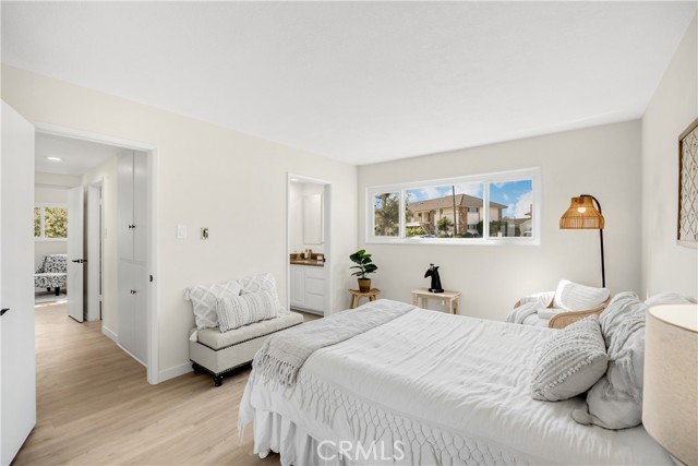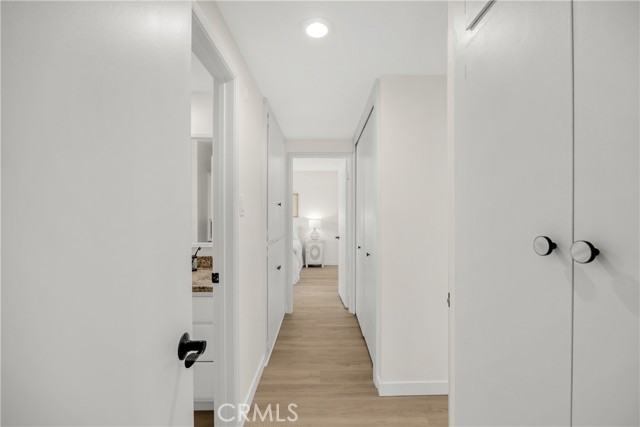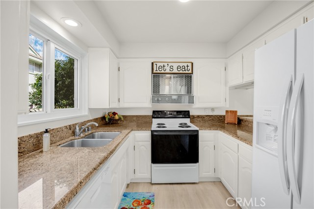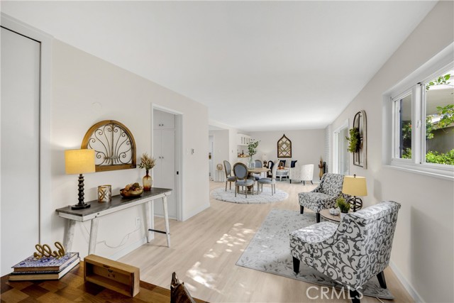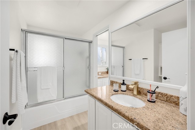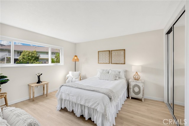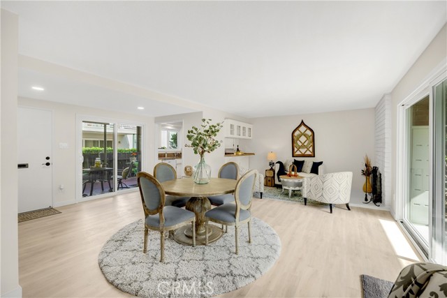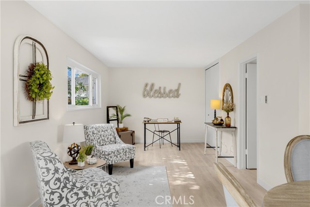 22934 Nadine Circle presents a rare opportunity to own a highly sought after ground level unit in the equally sought after New Horizons Senior Community. This model offers the option of 2 bedrooms and 1.5 baths; the 2nd bedroom is currently set up as an office/sitting area but the owner is willing to have a wall installed (with an acceptable offer) to make it a true 2 bedroom home. Newer dual pane vinyl windows and large sliders shine plenty of light on the new and stylish luxury vinyl wide plank flooring and fresh designer paint throughout, including a bathroom and kitchen cabinet refresh. You have your choice of a tranquil front courtyard or relaxing back patio to enjoy your morning coffee or afternoon conversations with friends. All this plus the added convenience of in-unit laundry and a close-by 1 car garage with storage. In the heart of the South Bay, New Horizons is amenity-packed and ideal for an active lifestyle featuring a community pool, spa, clubhouse, tennis courts and of course, pickleball courts! Landscaping, water and trash are also all included with the HOA dues. Social life is in full swing here with tons of activities, events and classes offered to residents. Again, this is a rare find with a great location to walk to the many amenities mentioned along with convenient access for visitors.