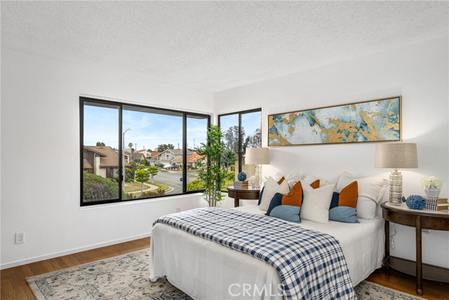 A picture-perfect home in a prestigious Torrance neighborhood, this bright, modern, and move-in-ready gem is a must see! Impeccable landscaping, a lush lawn, and a brick paver pathway elevate the already stunning curb appeal. Step inside the thoughtfully designed 2,400+sq ft layout to discover 4 bedrooms, 2.5 baths, and generously sized entertainment areas. Crisp white tones, picture windows, and gorgeous wood flooring lend a sophisticated charm to the seamlessly connected living room and chandelier-lit dining area. An avid cook’s dream come true, the gourmet kitchen features modern appliances, abundant cabinetry, a garden window, and gleaming granite countertops extending to the prep island. A multi-seater breakfast bar opens to the fireplace-warmed family room, where glass sliders inspire idyllic indoor/outdoor living. Wake up refreshed in the comfort of the carpeted private retreats, each with ample closet space. Set under vaulted ceilings, the expansive primary suite enjoys tons of storage and a convenient en-suite bath with a double vanity. Weekends call for lively gatherings on the pergola-covered patio where you can grill, chill, and sip cold beverages surrounded by a secluded backyard that’s truly a peaceful oasis. As a premium perk, there’s an attached 2-car garage with direct indoor access. Ready to experience the enviable lifestyle you crave? Come get a glimpse of this incredible haven before it’s too late!