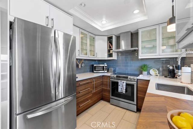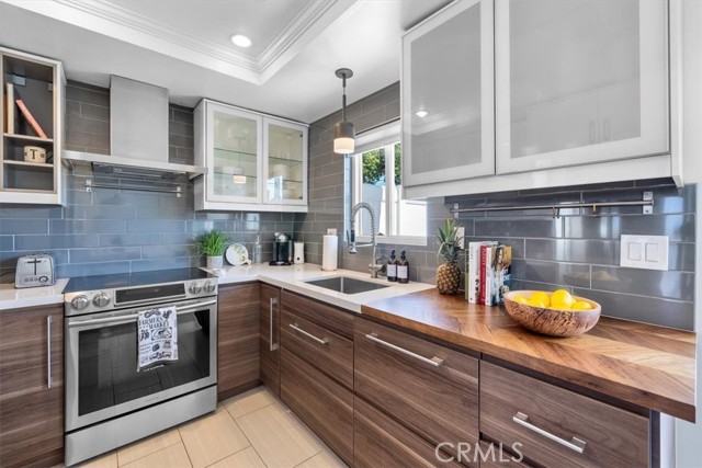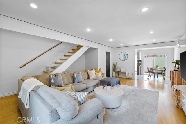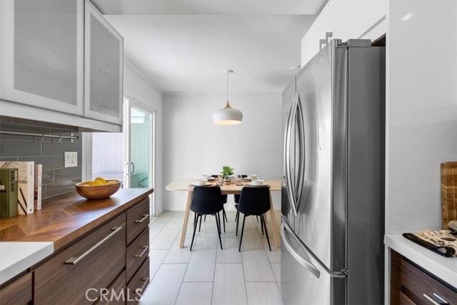 Welcome to 23418 Arlington, a beautifully updated, end-unit townhome in the heart of Southeast Torrance. This home features an open floor plan downstairs with three separate outdoor spaces to enjoy, including a larger area off the kitchen with plenty of room to create an outdoor entertaining area. The kitchen itself is equipped with a gorgeous butchers block, quartz countertops, camouflaged dishwasher, custom cabinetry, and plenty of storage space. Upstairs you’ll find two large bedrooms with tons of natural light. The primary suite features a balcony with sliding glass doors and a contemporary, en-suite bathroom. The second upstairs bathroom is situated between the bedrooms and has double sinks and room for your laundry. This townhome comes with two controlled-access points and two underground parking spots located right next to the entrance to the small community.