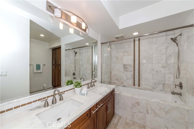 The most desirable condos...."Foundry." This is a Resort style gated community Penthouse facing South / Charles H. Wilson Park. Spacious unit has lots of natural lights with generous closet space and storage. 2 bedrooms + 2 baths. Energy efficient windows which offer comfortable room temperature throughout the year. Spacious kitchen has Granite countertops, upgraded cabinets, beautiful backsplash, stainless sink, and stylish tile floor. Both bedrooms have a walk-in-closet. The Master bedroom offers a big and deep bathtub. Inside Laundry. Washer, dryer, refrigerator are included. Private balcony off of the living room. Assigned two side by side parking spaces and two convenient storage units (#47, #48). This stylish condo complex offers fireplace resort style living, pool & spa, cabanas and lounge area with BBQ with beautiful lush tropical setting. Located close to Wilson park. Park facilities include basketball courts, baseball diamonds, tennis, and batting cages. Amenities include A/C, pool, spa, barbeque. HOA pays water, gas, trash, and sewer. At the park across the community there is a sports center and Farmer’s Market twice a week. Convenience and close to market, Del Amo shopping center, Freeway, eateries, beaches and more!