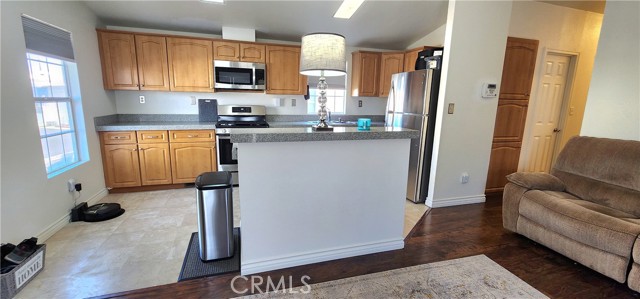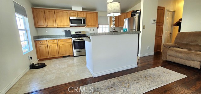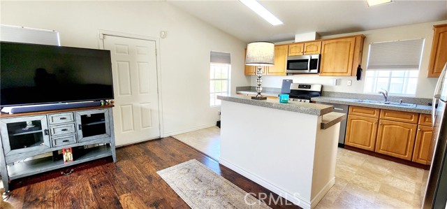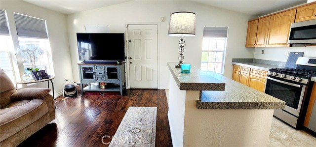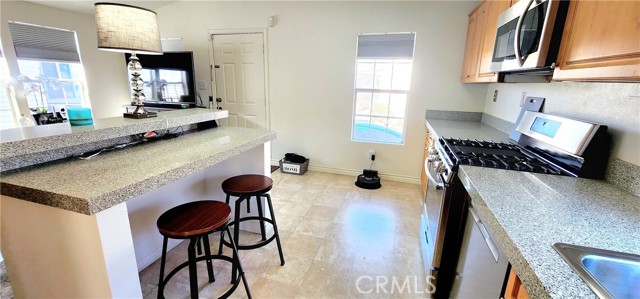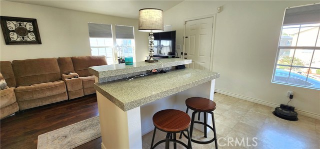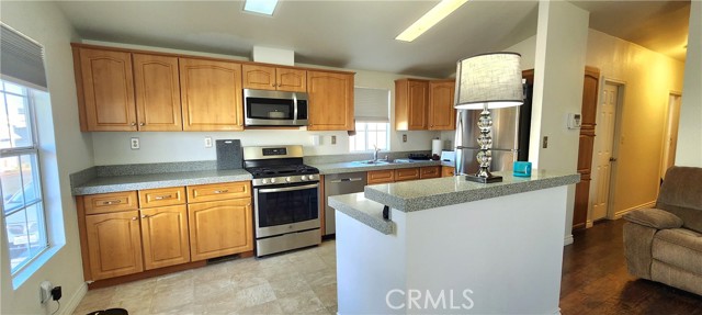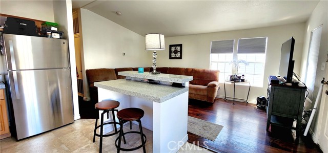 Turnkey remodeled 2 bedroom/ 2 bathroom home. Open floor plan with cathedral ceilings with lots of natural lighting. Remodeled kitchen with quartz countertop with an island with bar stools. Newer stainless steel appliances stove with 6 burners, refrigerator, dishwasher, and microwave are all included. There is a separate laundry with gas hookups and extra cabinets. Energy-efficient dual pane windows and newer shades to keep the home cooler. Air conditioning and central heating. Laminate wood-looking flooring throughout the home and linoleum in the kitchen has recently been replaced. Remodeled bathrooms with quartz countertops, newer toilets, faucets, mirrors, and showers. New paint inside and out. Alarm and camera system included. Family park. Torrance school districts. Pet friendly. Why rent when you can buy your own home?