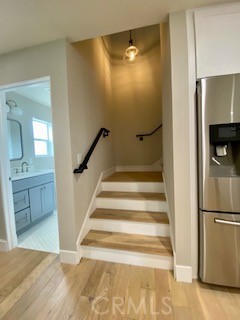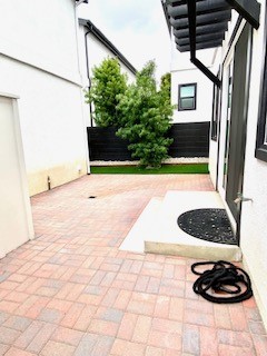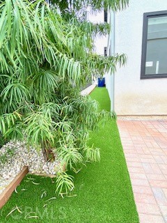 If you're looking for a pristine, newer construction home with an open concept living area, you've found it! This coastal farmhouse home is complete with hardwood floors throughout, a gourmet kitchen with a massive quartz island, a large laundry room with a sink and lots of extra storage and a half bathroom all on the main level. There is direct access to the garage. Upstairs are three bedrooms, including an oversized primary suite with a walk-in closet. The primary bathroom has a luxurious stand alone soaking tub and a separate shower, double sink vanity with marble countertops. A second full bathroom is in the hallway. Stay cool with energy efficient central air conditioning. garage wired for electric vehicle charging. Upgrades include brand new artificial turf in the front and side yard, gutters, plumbed natural gas line for a BBQ or spa on the patio, hardscape in the front yard and private brick patio off of the living room. This is a two-on-a-lot townhome, but looks and feels like a single family residence with lots of secure privacy. Close to everything!