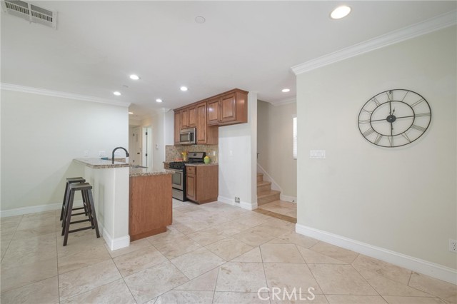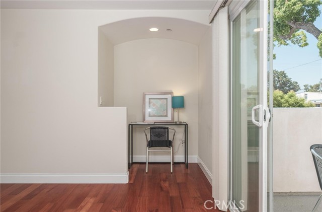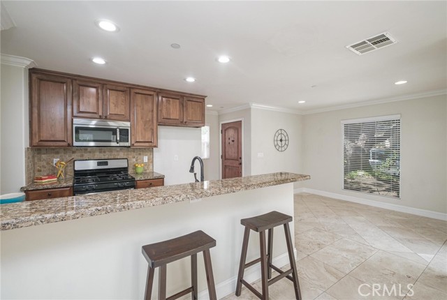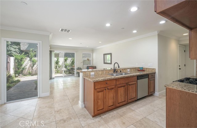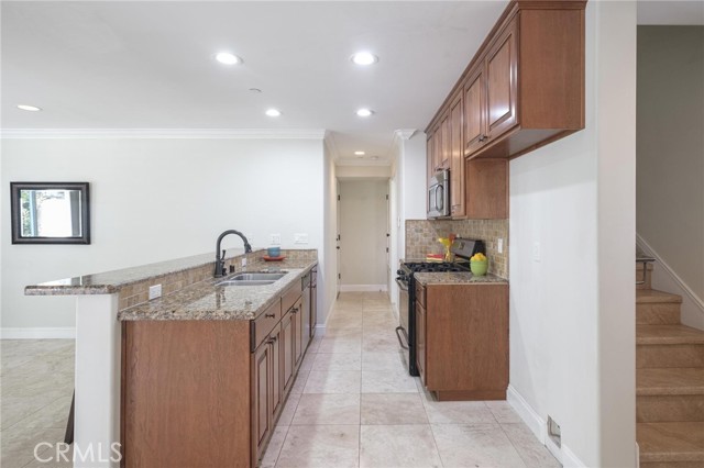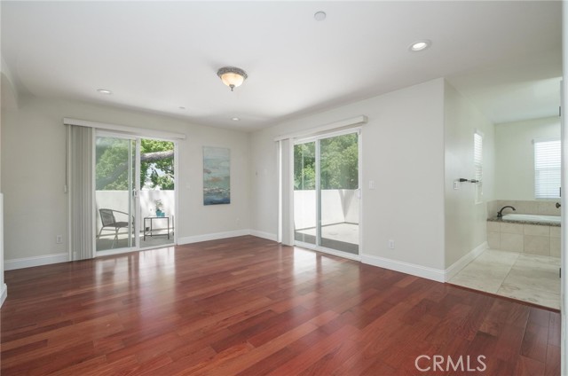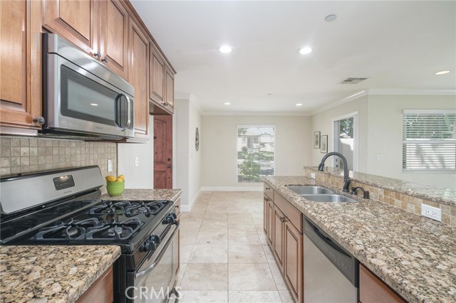 This beautiful, newer Spanish retreat is bright, stylish and feels just like a single family home. Nestled on a tree lined street, the lush landscaping will lead you to your impressive wood front door with a guard peek. Once inside you’re surrounded with tranquil views of your private wrap around yard and garden. This main level has a great open concept flow from the living room, kitchen to the dining room and access to the yard. Perfect for that indoor outdoor lifestyle, dining al fresco, gardening and entertaining. You’ll enjoy the gourmet kitchen and its extra long counter seating area. The downstairs level also has a guest bathroom, beautiful travertine flooring and direct access to an oversized garage. Upstairs you’ll find two bedrooms -- both with private en suite bathrooms, wood flooring and balconies. The spacious primary bedroom boasts a large custom closet, a built-in nook for a desk or vanity, two balconies and a luxurious four piece spa like en suite bathroom. There are double pane vinyl windows throughout. The garage has an abundance of custom storage cabinets and a roomy laundry area (washer and dryer included).This thoughtfully designed townhome is just one of three with low hoa dues and is close to parks, shopping, good eats, top schools and the beach!