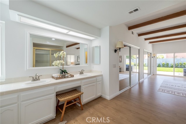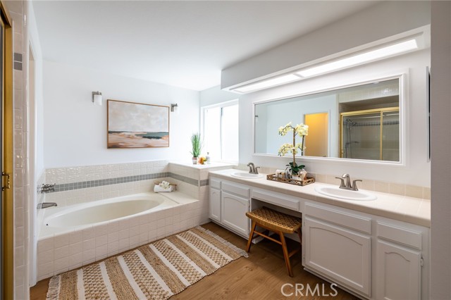 Bathroom Information | Low Flow Toilet(s), Shower in Tub, Double Sinks in Primary Bath, Exhaust fan(s), Separate tub and shower, Soaking Tub, Tile Counters, Walk-in shower |