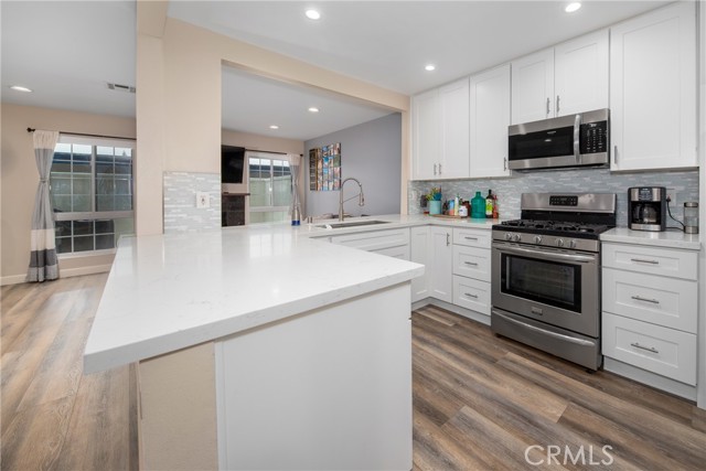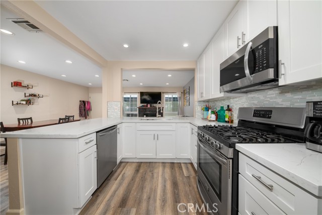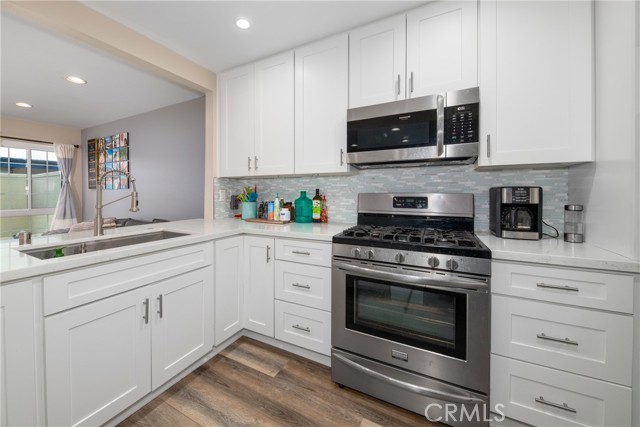 Step into a world of refined living with this meticulously updated 2 Master - bedroom, 3-bathroom. A stunning interior transformation with new recessed lights throughout the condo, includes all-new flooring with new stainless steel appliances and quartz kitchen counter tops. Also including new ceiling fans throughout your home and new energy-efficient double pane vinyl windows. You'll find the perfect blend of comfort and functionality with dual master suites, each boasting its own full bath and walk in closet. Brand new garage door and garage opener and beautiful sliding door leading you to upper and lower level patio. Nestled within a distinguished school district and conveniently poised near the freeway, this home is a triumph of style and convenience.