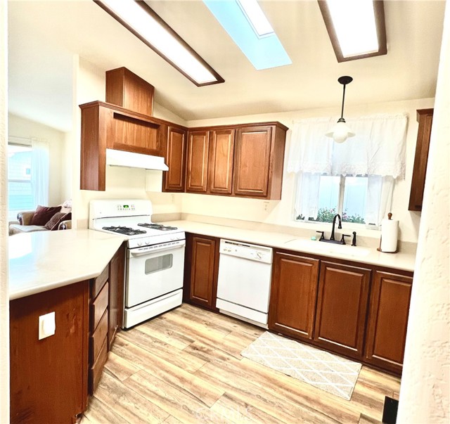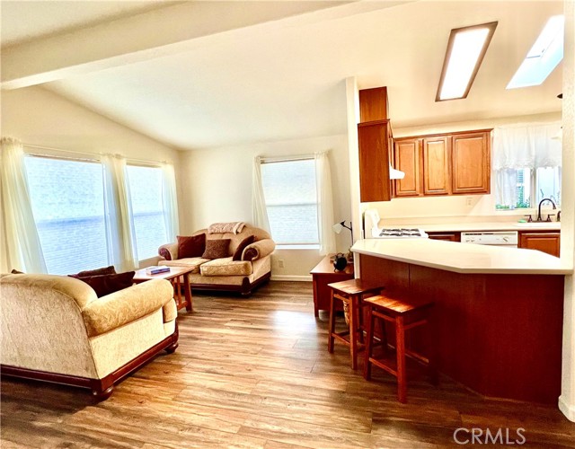 Cottage like setting located in desirable Skyline Mobile Home Park, a 55+ senior community. Enjoy the privacy in the back of the home which is fenced and nicely landscaped. This home was built in 2005 and has been well maintained with double pane windows, laminate flooring, central HVAC system, custom cabinets. Range, hook ups for washer and dryer, central HVAC system, recessed lighting, ceiling fans throughout the home and plenty of storage. Walking distances to Trader Joe's, Whole Foods, AMC movie theatre and lots of dining choices, directly across the street at Rolling Hills Plaza. Enjoy the community pool and many activities offered by Skyline.