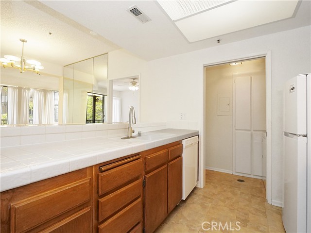 PRICE IMPROVEMENT! Amazing opportunity to purchase this lovely end unit condo, located in the desirable guard gated, lush, resort-like Windemere on the Green complex! With a Buyer's own personal touch, this home could be fabulous! The open flowing floor plan has a bright kitchen with breakfast bar that opens into the light, bright living room and dining area. Adjacent to the living room is a den area with an inviting fireplace, perfect for an office or sitting area. The balcony off of the living room overlooks the beautiful courtyard area. As you enter the spacious bedroom, you'll notice the plentiful mirrored door closet space and the private bathroom. No need to leave your home to do the laundry as there is a laundry room with space for a full size washer and dryer in the unit! Also included is 2 side by side parking spaces in the community parking garage. Windemere is an amazing guard gated community complete with a large tropical pool, a lap pool, in ground spas, racquetball courts, fitness center, Club House with kitchen, basketball short court, BBQ areas, game room and much more! Conveniently located near shopping, restaurants, wonderful schools, Wilson Park which has Farmer's Market twice weekly, beaches and freeways!