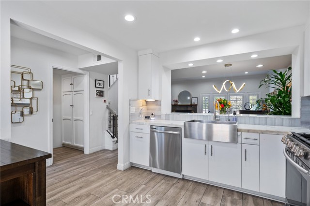Welcome home! As you step through the front door, you are greeted by a stunning open kitchen that overlooks the spacious living area. Recently renovated kitchen cabinets and stainless steel appliances add a touch of luxury. Step out of the kitchen to the private patio, perfect for enjoying your morning coffee. The living room offers a large, bright space with newly added recessed lighting and ample natural light from the back patio, which boasts breathtaking views of the park. Entertain guests or unwind by the fireplace in this inviting space. Upstairs, the floors have been beautifully redone, leading to two guest rooms and a custom-tiled full bathroom. The primary room is a true sanctuary, featuring generous closet space, a sliding barn door, and his-and-hers sinks. Dual-pane windows and plantation shutters throughout ensure privacy and comfort. Stay cool with the recently updated HVAC system. The self-managed HOA includes basic cable, internet, water, sewer, garbage, and maintenance in the dues. Enjoy the convenience of secured garage parking, two side-by-side parking spots, and a private storage closet. Located near Torrance Park, Torrance Unified Schools, shopping, dining, freeways, and more, this home is a gem waiting to be discovered.