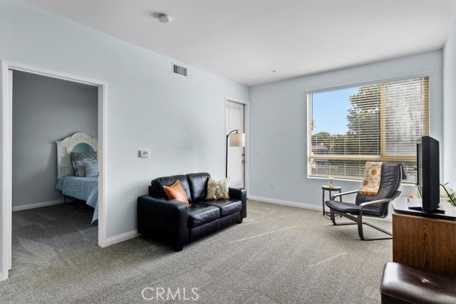 The Meridian at Cabrillo is a beautiful complex with 42 units and an interior open courtyard space with bubbling fountains and a peaceful, serene vibe. Designed for seniors 55 and above with no stairs and an elevator connecting all levels. Wonderful, sunny condo with efficient floorplan, large bedroom suite + a separate den or office at entry. Granite counters, breakfast bar and lots of storage in kitchen, private laundry in unit, dual paned windows, high ceilings, A/C and private sunny deck/balcony. All new carpeting and interior paint. Secure-gated complex with one parking spot in garage, beautiful community room w/ kitchen & fireplace. Elevator from garage to each level. There is also a fitness room for exercise and a large Community room for private parties, community events, etc. Very convenient location to Wilson Park, Farmers Market, healthcare, shopping and Del Amo Mall. Less than 5 minutes to 110 freeway is also nice!