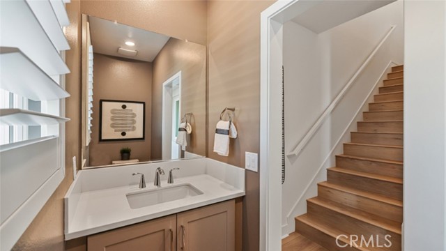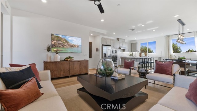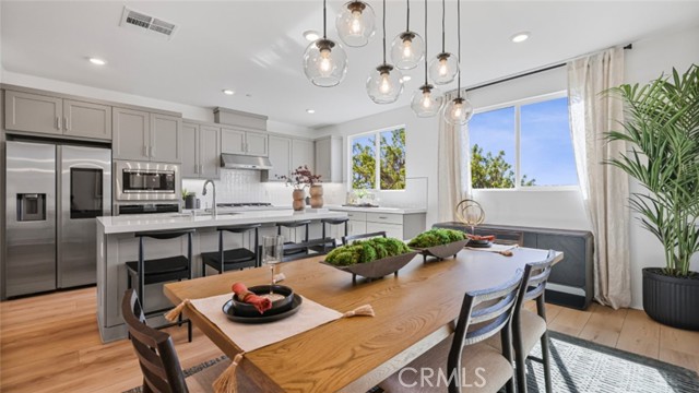 From the front entry gated patio, enter a foyer that leads to the 3-car garage, or head upstairs to the main living space on the second floor. Here you will find open, modern kitchen - replete with top-of-the-line, high-tech Samsung appliances - and dining room which both share an open-concept floor-plan. Leads to a spacious covered deck for effortless indoor-outdoor living and entertaining, and a convenient half bathroom on the same level. Thee bedrooms are found on the third level, where laundry closet and built-in cabinetry is also conveniently located. Spacious Homeowner's Suite has a walk-in closet with static window as well as a luxurious bathroom with separate water closet, very large shower and double-vanity sinks. Home comes with Ring security, Navien tank-less water heater, EV charger plug-in, Quartz kitchen counter tops, shaker-style cabinetry with soft close hardware, and Honeywell thermostat for programmable control of central air and heat. Home is upgraded with wood-plastic composite (WPC) "Timeless Oak" flooring on the entire 1st and 2nd floors, luxury carpet & deluxe padding in the 3 bedrooms, walk-in closets and hallway, and 12"x24" white luxury tile in the 2 upstairs bathrooms and laundry area. The kitchen cabinetry and built-ins throughout this home are in the unique "Stone Grey" color, one of only three homes with this special finish in the entire development!