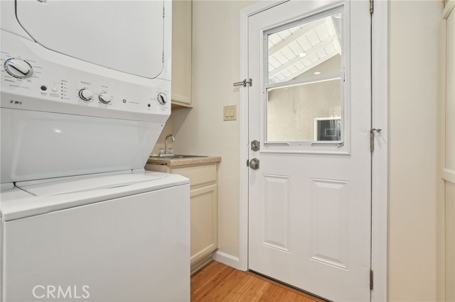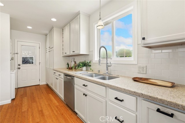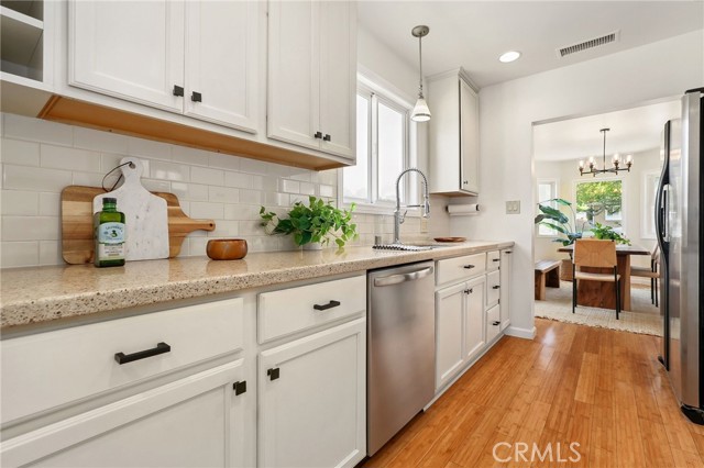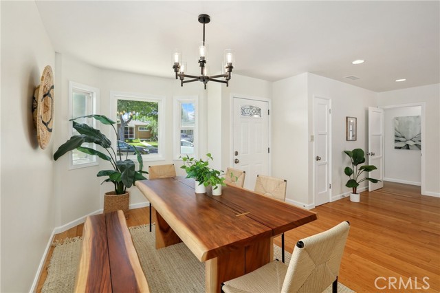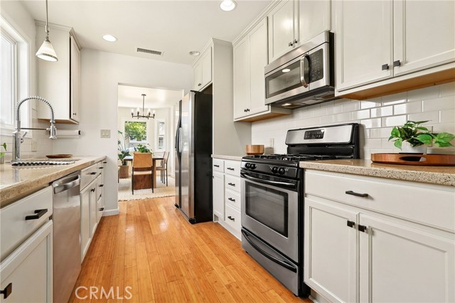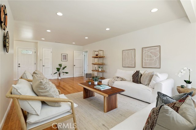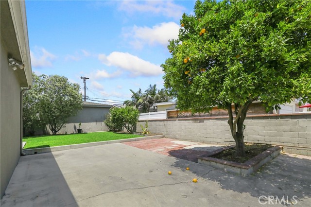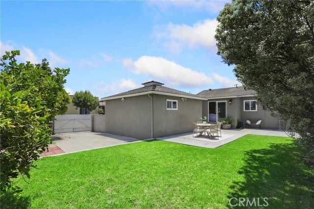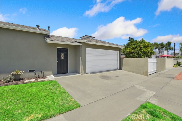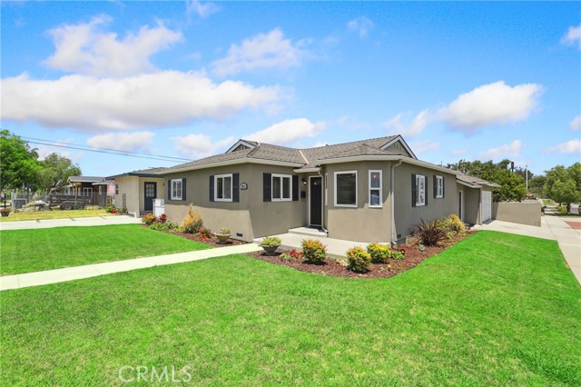Welcome to this charming home with beautiful curb appeal on a prime corner lot in a peaceful neighborhood. This gem will capture your heart! As you enter, you'll be greeted by the warm embrace of Bamboo wood floors that extend gracefully throughout the spacious living area. With an abundance of natural light pouring in from the dual pane windows and the ambiance set by recessed lighting, you'll feel at ease in any weather condition, thanks to the efficient Central HVAC system. The heart of this home is the updated kitchen, which boasts granite countertops, stainless steel appliances, and ample storage space. The kitchen also houses a convenient laundry area equipped with a stackable washer & dryer and utility sink. Three generously-sized bedrooms provide ample space for relaxation and restful nights. The renovated bathroom showcases a modern touch, featuring a dual vanity and a tub shower combo, making it a perfect sanctuary to unwind and recharge. But the delights don't stop there! Head outside to the enclosed yard, where you'll find a sunny patio perfect for enjoying lazy afternoons and al fresco dining. Embrace your green thumb with the fruit trees that dot the landscape, adding natural beauty and a touch of freshness to the ambiance. For those with an adventurous spirit or multiple vehicles, you'll appreciate the gated access to an additional parking spot, tailor-made for RVs, boats, or trailers, plus a 2-car garage. So, whether you're looking to relax in the cozy living space, entertain friends and family, or indulge in some outdoor enjoyment, this property offers it all. Ideally located close to award-winning schools, City Hall, Cultural Arts Center, restaurants, parks and the mall. Don't miss the chance to call this house "Home Sweet Home."