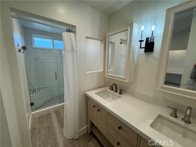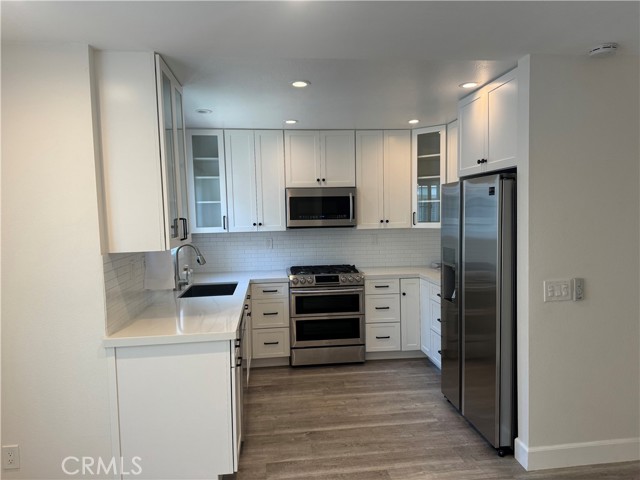 One of the most desirable gated communities in Summerwind, This 2 bedrooms and 2 1/2 baths townhome is completely been remodeled with natural wood vinyl plank flooring , recessed lighting, fresh paint, and upgraded windows through out. The upgraded kitchen boasts new Pacific appliances, new wood cabinetry, new quartz countertops and white-tile backsplash. Upstairs are two vaulted ceiling primary bedrooms, each has its own an En-Suite bathrooms had been completely remodeled with most quality standards. All completely new interiors. Additional features include a 2-car garage and storage room, and a convenient laundry area with new utility sink, cabinet and new washer/dryer. This best location is close to Wilson Park, Torrance Farmer's Market, Del Amo Shopping Center, and within award winning Torrance Unified School District. Amenities includes 3 resort style pools, spa, a children's playground, a community clubhouse and well maintained community grounds.