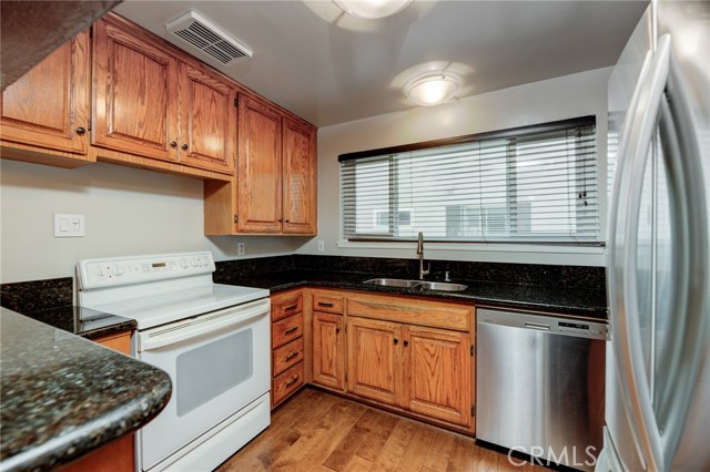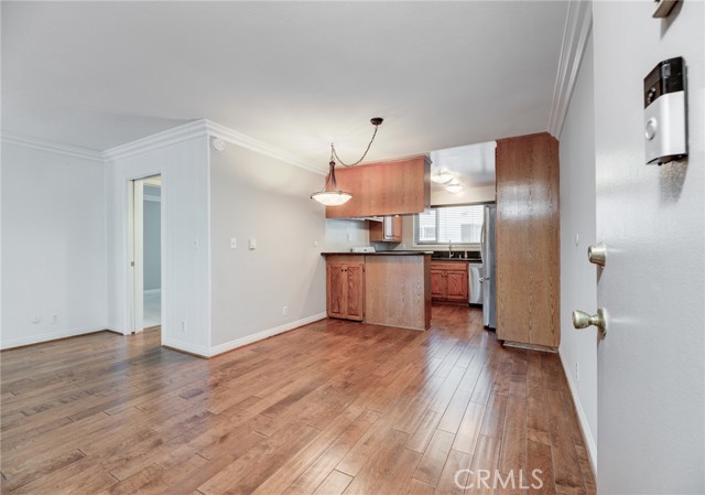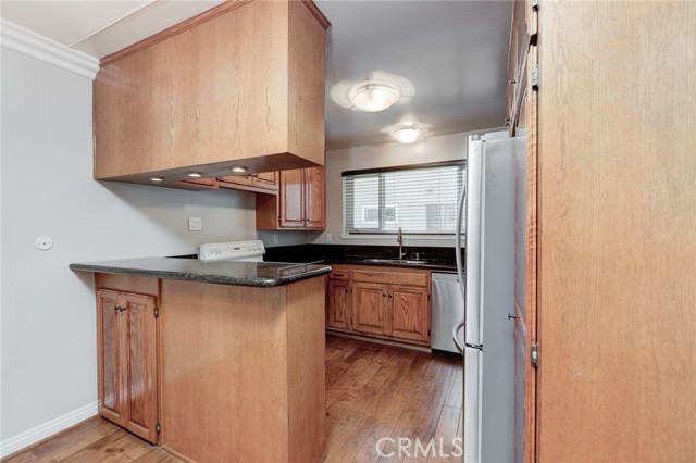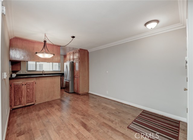 Amazing opportunity to own this Move-In Ready, Pristine Condition, One Story End Unit in the city of Torrance. This Immaculate unit features One Spacious Bedroom and a Den w/ a Closet and a Window, which can be easily converted to a Second Bedroom. The Large Bedroom features Plantation Shutters, New Mirror Closet Doors, and View of the Swimming Pool from the Bedroom Window. Large open Living Room with separate Dining Area with Engineered Wood Flooring throughout. Plenty of Storage Space with 3 Large Closets and additional Storage Room. Solid Oak Kitchen Cabinetry with raised panels. Granite Countertops in the kitchen with plenty of Cabinet Space, Custom Wood Blinds, Electric Range and Microwave, Stainless Steel Refrigerator and Dishwasher, and Double Stainless Steel Sink. The Upgraded Bathroom has Glass Shower Doors, Reglazed Tub and Tile, New Shower Fixtures, New Heater, Updated Cabinetry and Mirror, Granite Countertop, New Electrical and Lighting. New Carpet flooring in the Bedroom and the Den. Smooth Ceiling and Crown Molding throughout the entire unit. Double Pane Windows and Sliding Glass Door. Large Patio with Tile Flooring. Two easily accessible Community Laundry Rooms, but you can install your Own Washer and Dryer inside. This Unit comes with a 2 Car Coveted Tandem Garage, which is a Huge Perk for this size unit. 2 Ring Cameras Installed. Del Amo Mall, Target, and many other shops and restaurants are near by. This Quiet Interior Unit is away from the street. This is a CoOp, but it is in transition to be turned into Condos. Low HOA covers, cable TV, water, trash, common area maintenance, and Internet.