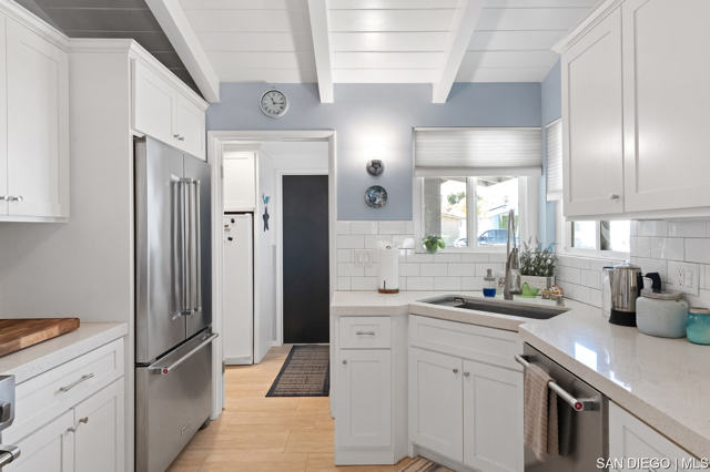 Do you like to entertain? Or maybe just quietly relax by the fire after the kids go to bed? Well, this home offers it all! Prepare to be captivated by this one-of-a-kind gem, in one of the best neighborhoods in Torrance. This unprecedented property offers an array of incredible features including a 2-car garage, unlimited street parking, RV parking on-site, upgraded entertainment features, and a fully remodeled interior. The huge driveway is perfect for parking all of your vehicles, including your RV or boat. In addition to the ample amount of space in the driveway and the street, there is a two-car garage with access to the home. Walking through the front door you instantly notice the high ceilings and fully remodeled interior. The light from the large windows facing the spacious and renovated backyard shines through into the living room, lighting the entire home up with natural light. To the right is the fully remodeled and gourmet kitchen, with stainless steel appliances, and the new, top of the line Viking Range/ Stove. The custom cabinets offer ample amount of storage for all types of cooking enthusiasts. The master bedroom has its own bathroom, which was recently remodeled and expanded. The spacious and open living room has a fireplace with a custom mantle and built in shelves. The second and third bedroom can be fused into one large bedroom, or it can be separated into two bedrooms. With access to the backyard through the large sliding doors and located next to the second remodeled bathroom, this room can really be converted into anything you desire. The fourth bedro Upgraded Electrical Upgraded Heating New Water Heater Upgraded Plumbing