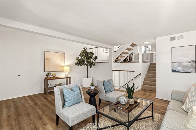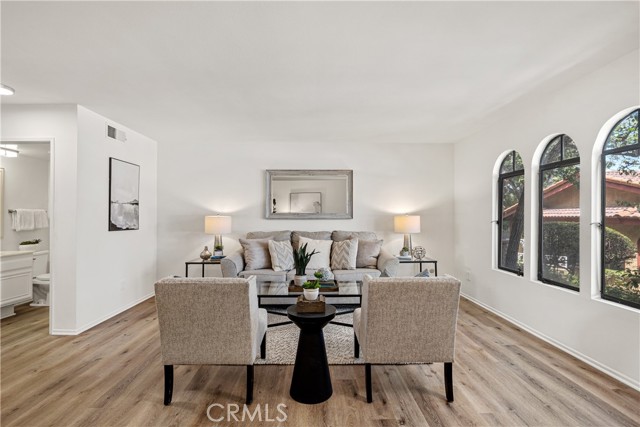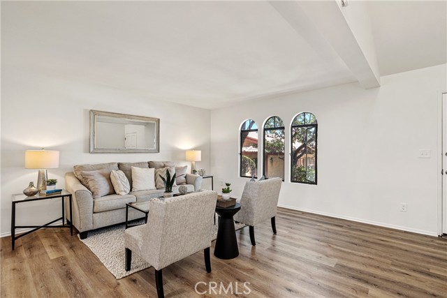 The Torrance home you've been waiting for is here in the Artesia Gardens. This charming 2 bedroom and 2.5 bath home offers 1,429 square feet of living space and a contemporary and tasteful aesthetic. With newer updates, this home leaves a lasting impression with the open floorplans enhancing the spacious ambiance, pristine wood-style floors, and complemented by a functional layout. The great room style kitchen and dining area brings a wonderful space for entertaining and everyday living with ample cabinetry and counter space, dual ovens, a new stainless steel range hood. The large open dining space may serve as a family room or the dining nook that may be a versatile space for a den of home office. The two primary suites feature spacious en-suite bathrooms. The larger primary suite features an outdoor patio overlooking the pool, two large closets, and a the ensuite bathroom with large vanity, dual sinks and private tub and shower. The home is in a prime location - across from the pool, community room, and the beautiful grassy park of the Artesia Gardens with large trees and expansive lawn. Additional features of the home includes the large laundry room, conveniently attached 2-car garage, new water heater, and freshly painted interior. The Artesia Gardens also offers a community room that is great for parties and the beautiful swimming pool. Residents can relish the proximity to lovely neighborhood parks, shopping centers, and restaurants. Additionally, the beautiful Southbay beaches are easily accessible, providing an abundance of options for leisure and exploration. Discover unparalleled value and an inviting home that encompasses everything you've been seeking.