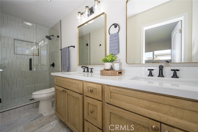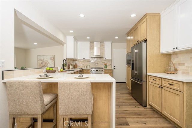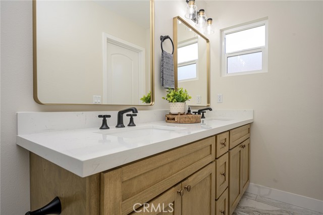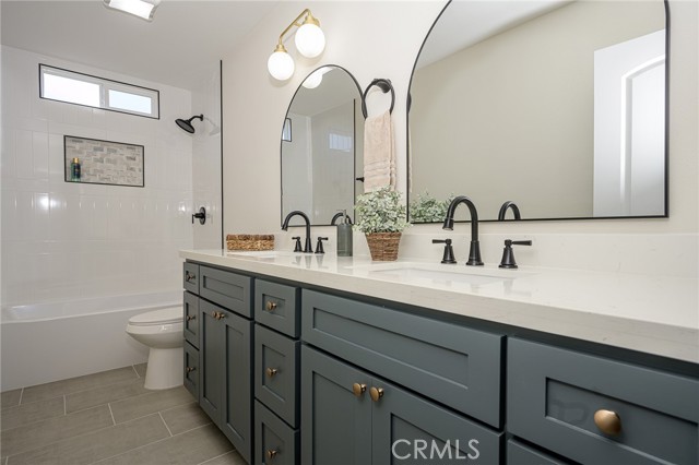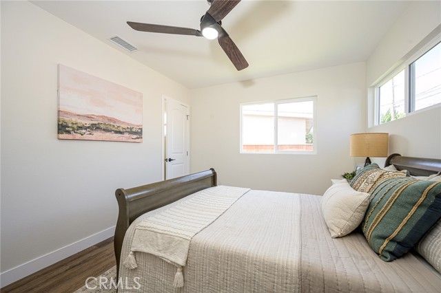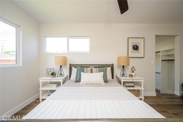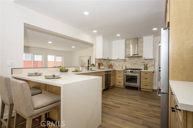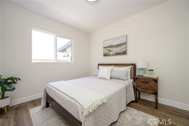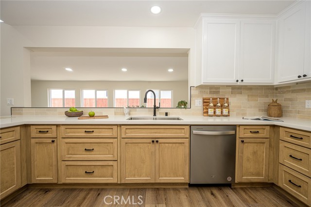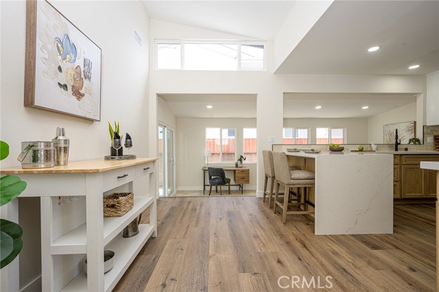 Stunning 3-bedroom, 2-bathroom home is situated on a spacious lot approximately with 6153 square feet in highly sought after neighborhood in Torrance. There is an open floorplan with vaulted ceilings in the living area offering an abundance of natural light. The tastefully updated kitchen has new shaker style cabinets, quartz countertops, waterfall peninsula, full tile backsplash, stainless steel appliances, new hardware and fixtures. There is an additional room that could be used as a dining area, living space, home office or flex space. The primary bedroom has a large walk-in closet with custom built ins, an attached bathroom with walk-in shower with custom tile surround, new dual sink vanity, tile floors hardware and fixtures. The common bathroom features tile tub surround and flooring, new dual vanity, and fixtures. Other features include new luxury flooring in living room and bedrooms, freshly painted interior and exterior, forced heating and air conditioning, and energy efficient windows. The enclosed backyard is very spacious, with a patio area and yard, a perfect space for relaxing and outdoor dining. There is an attached 2 car garage and an oversized driveway that allows for additional off-street parking. Located on a quite street and just a short distance to restaurants and shopping this home is a must see.