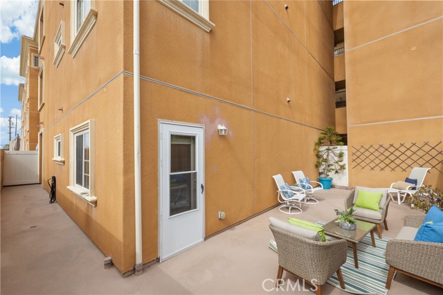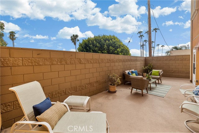 Discover one of the largest, updated senior condos in the South Bay, offering 2 spacious bedrooms, 2 baths, and an expansive 1,430 sq ft of living space. This desirable ground floor end unit has another unique perk for gardening enthusiasts - a sizeable 500 sf wraparound southwest-facing sunny patio. It’s the only patio like it in the building! Step inside to find an updated kitchen featuring brand-new quartz counters and freshly painted cabinets. The entire interior has been freshly painted, with wood floors gracing the entry, hallway, and secondary bedroom, while new carpet adds comfort to the living room and primary bedroom. The large primary bedroom boasts a walk-in closet and an ensuite bath with a separate tub and shower. For your convenience, a washer and dryer are included. Courtyard Villa Estates is a luxury over 55 community where homes rarely come on the market. Residents enjoy a range of activities and amenities, including elevators, a social room, a gym, earthquake insurance, and a secure entry. This friendly community is ideally located near shopping, medical facilities, and transportation. The unit comes with two parking spaces and additional storage. Don't miss out on this exceptional opportunity to join a vibrant, welcoming community in a rare, spacious single-level condo.