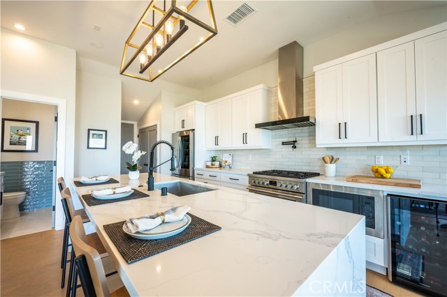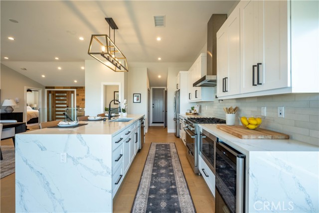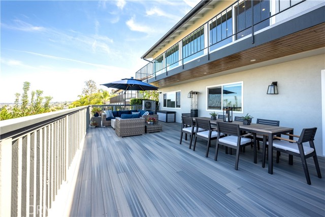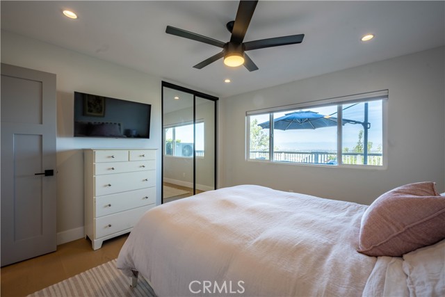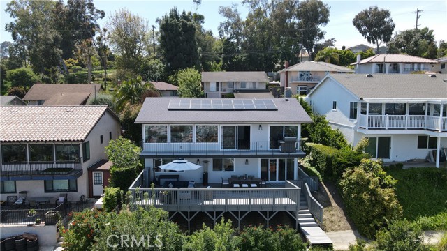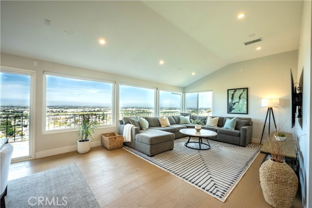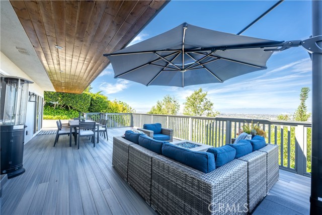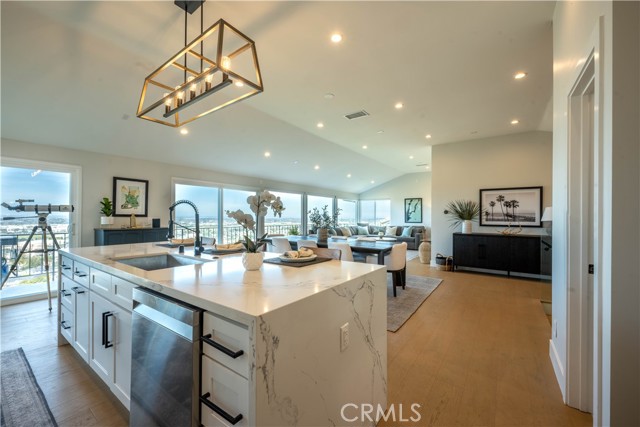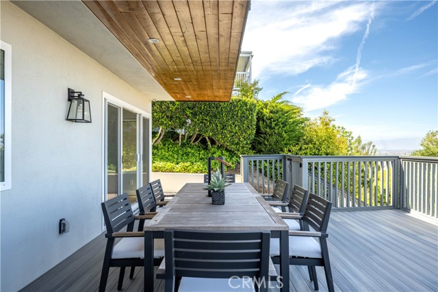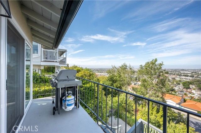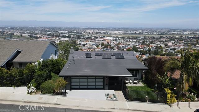 Panoramic Views, luxury and comfort are what you will experience with this contemporary two-story home nestled in the upper Hollywood Riviera neighborhood. With four bedrooms and four bathrooms, it offers a sanctuary of spacious sophisticated living. Upon entry, you're welcomed by an open floor plan illuminated by an abundance of natural light streaming through numerous windows and sliding doors that frame breathtaking views of sunrises, sunsets, and panoramic city and mountain vistas. The home's centerpiece is the gourmet kitchen, featuring a quartz waterfall-edge expansive island complemented by white shaker cabinetry adorned with contrasting dark iron hardware and a white subway tile backsplash. Equipped with high-end stainless-steel appliances, including a ThinQ LG smart French door refrigerator, a beautiful Italian 6-burner range and oven, dishwasher, and wine fridge, the kitchen is a chef's dream. The home also comes with a Samsung smart washer and dryer. Entertain with ease at the breakfast bar or on the spacious upper and lower decks, which offer ample room for outdoor gatherings. Relax in the lower-level family room beside the cozy remote-controlled gas fireplace, which creates a warm ambiance perfect for intimate gatherings. Wood floors throughout the home add a touch of natural charm and warmth. This home was completely renovated in 2021 and offers an attached two-car garage with overhead storage racks, a new roof, plumbing, and electrical, and a tankless hot water system with instant hot water recirculation. As an added bonus, the home is equipped with an energy-efficient Nest thermostat, solar panels that offer NEM service, and a Tesla Powerwall backup battery. Ideally located near Pacific Coast Highway, this home offers easy access to nearby amenities and recreational activities. With its impeccable design, breathtaking views, and prime location, this Hollywood Riviera gem invites you to experience luxury living at its finest.
