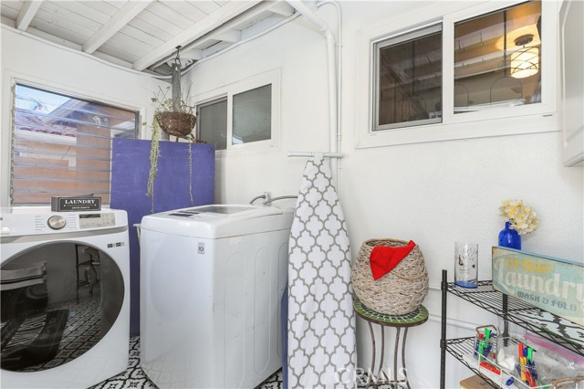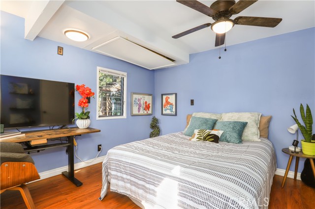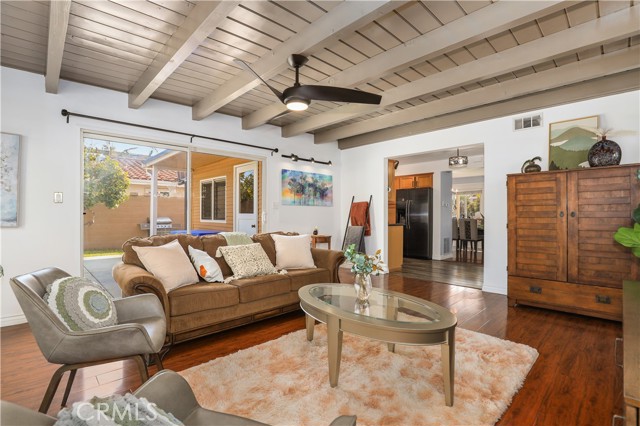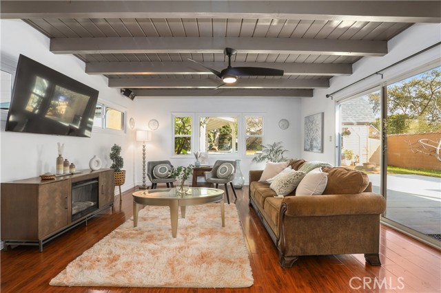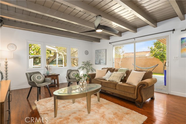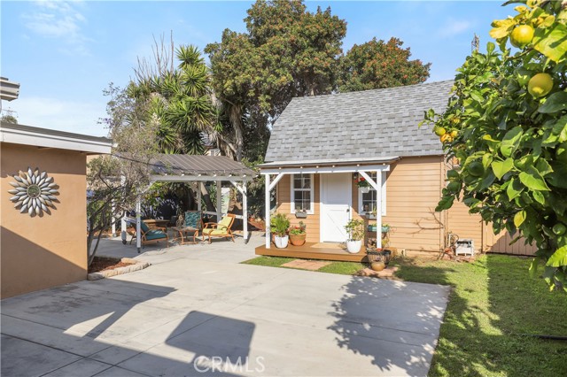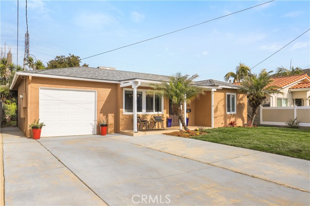 Wow! Talk about Curb Appeal...this one will stop you in your tracks! With a newly seeded front lawn, porch and full driveway up front leading into your attached garage, plus a HUGE back yard and back unit...this lovely home will not disappoint! From the moment you walk in, you'll be struck by the flood of natural sunlight in this home, the gleaming hard floors and the dual pane windows and Air Conditioning! You are greeted upon entering with a formal dining room with charming window seating/storage bench area facing out to the front grassy yard. This flows into the remodeled kitchen with granite counter tops, modernized tile backsplash and luxury vinyl floors. Plenty of counter space and custom cabinetry to hide all of your goodies! You also have direct garage access across from the kitchen for your convenience. The kitchen flows into the striking open beamed family room with plenty of space and direct line into the beautiful back yard. Don't miss the enclosed and large laundry room as you step into the yard from the Family Room. The two bedrooms are ample in size and the main bathroom in between the two bedrooms has been tastefully remodeled and full of modern touches. As you make your way to the back yard....do not miss the stamped concrete with plenty of space for the kids to play and for you to entertain family and friends under the moveable pergola! The back house is beyond darling with a full bedroom, bathroom (w/a shower!) and loft area for more space. This area has been rented out in past years, used for family and friends visiting from out of town and most recently as an office space and play room....the possibilities are endless! Don't miss out on this idyllic tree lined street, and is of course a part of the Award Winning Torrance school district with close proximity to shops, restaurants, the beach and freeway access!