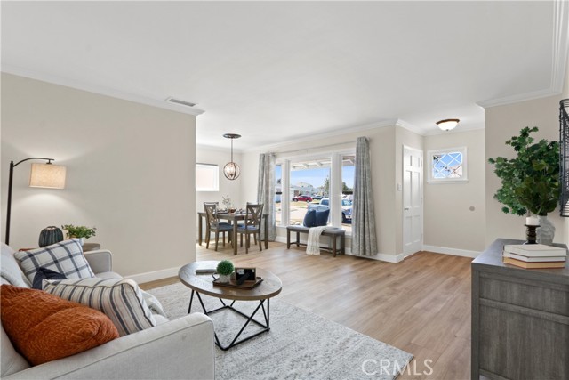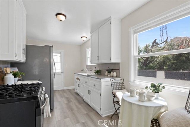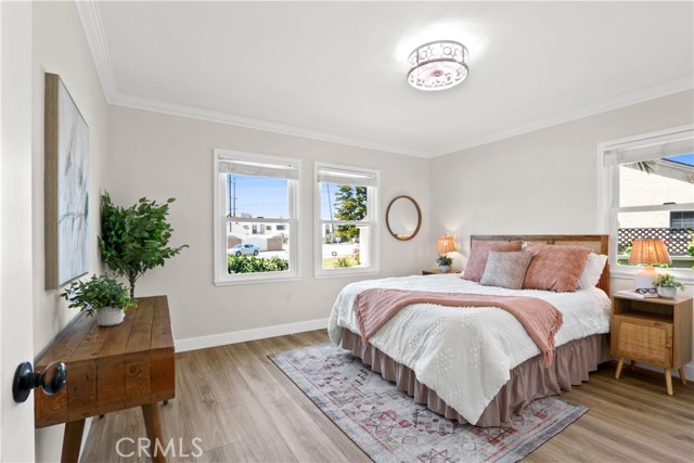 If you’ve been waiting for an affordable home in WEST TORRANCE, this is currently the best priced home in the area! As you arrive, you’ll be taken by the adorable “cottage” vibe this home exudes. With meandering roses and a slate tile porch, you’ll be sold before you get through the door. Once inside, you’ll see a fresh, neutral paint palette, and new wood look “silver elm” luxury vinyl flooring throughout. This home is flooded in natural light from the large picture window shared by the living and dining rooms. The galley style kitchen offers well preserved cabinets and the original tile counters in pristine condition. A cozy breakfast nook is convenient for a quick nosh before work or school. There are three good-sized bedrooms, all with good sized closets and lots of storage. The bathroom offers a separate tub and stall shower. There’s a good amount of storage in the hallway. Although there are still some upgrades needed, the long-time owner has made this home “move-in” ready – new interior paint, all new flooring, new or newer light fixtures, dual pane windows, forced air heat, new decora style plugs and switches, new faucets and more. A long driveway leads to a large two car garage with a built-in workbench and shelving. As if this is not enough, this charming home sits on a 6,998 square foot lot with two large patio areas, mature trees, a fire pit, a tree swing, and a huge garden area with raised planters ready for your summer harvest. This super convenient location is close to stores, major streets and freeway access, and offers access to top-rated Torrance schools. This is the complete package, and one you should not miss!