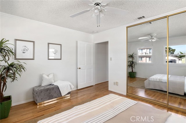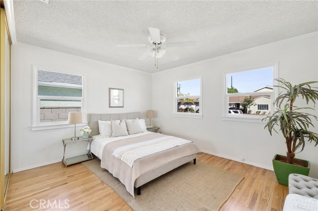 Great opportunity with this 3 bedroom 3 bath (1+3/4+3/4) home with a "detached permitted exercise room" with a bath (get a permit to make an ADU? - check with city). All of this on a large lot. Step into the living room and dining area onto the beautiful refinished hardwood floors - retro kitchen with tile counters, white cabinets, new vinyl floors and direct driveway access with a brick ramp and behind a gate - private master bedroom with a fireplace, two closets including a walk in, 3/4 bath, new carpet and new deck to get out into the spacious backyard - plus a second "oversized handicapped bath walk in shower" - front bedrooms has hardwood floors and mirror closet door - second bedroom has new carpet and mirror closet doors - laundry is in the hallway - forced air heating, crown molding, fresh interior paint, new deck, newer windows - now onto the huge bonus - a detached permitted exercise room of approx. 212 sq ft (not included is the sq ft) with a bath - great office, exercise room, playroom, hobby room or convert to an ADU (you will have to confirm with the city - large backyard for outdoor enjoyment - convenient to parks, award winning schools, medical, shopping, freeway access and a short jaunt to the beach - wait are you waiting for?
