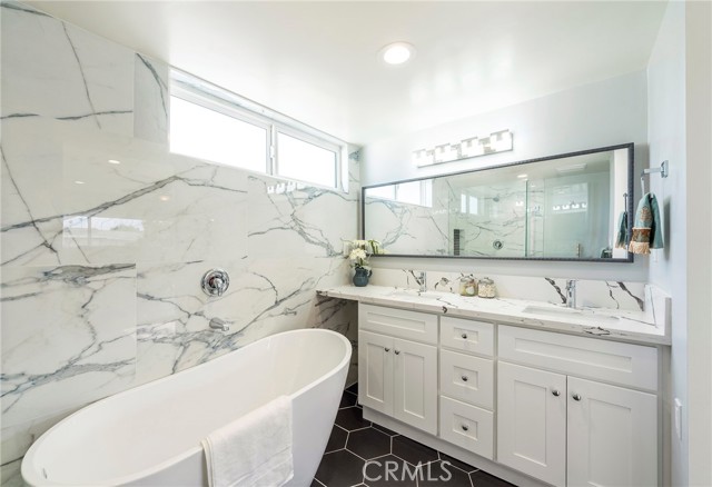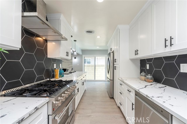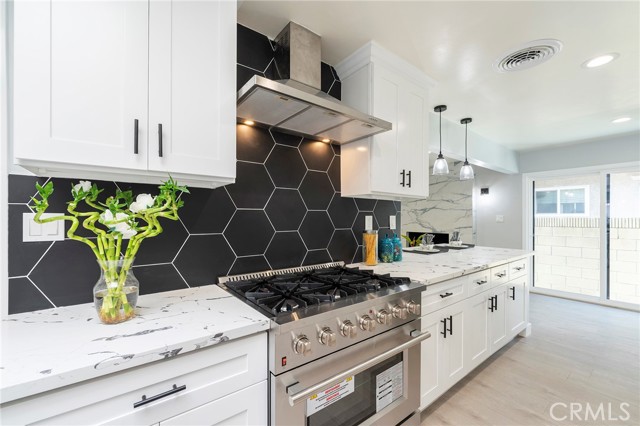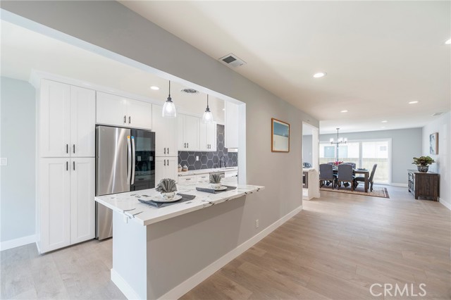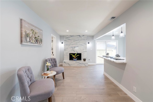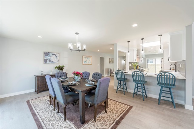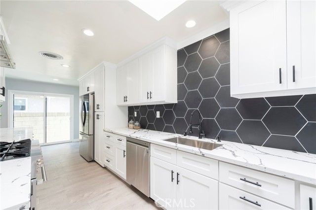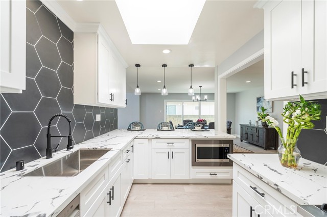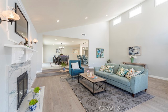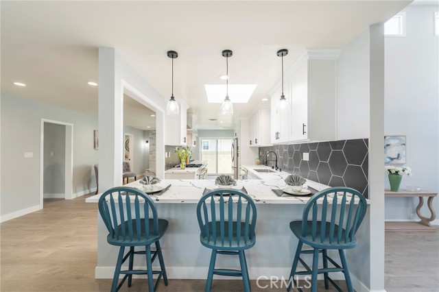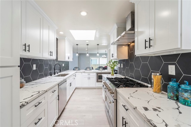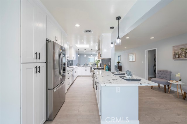 LET THE SUNSHINE IN THIS BEAUTIFULLY REMODELED SINGLE LEVEL WEST TORRANCE HOME. With the skylight and an abundance of windows, natural light streams throughout the home. As you walk in this home you are greeted with Vaulted Ceilings, LED Recessed Lighting, Scratch Resistant Plank Flooring, and Tiled Fireplaces. Expansive Open Concept Chefs Kitchen includes White Shaker Cabinets, Quartz Countertops, and Stainless Appliances (6 Burner Range, French Door Refrigerator, Under Counter Microwave, and Dishwasher). The 2 Breakfast Counters can seat up to 6 guests. Dedicated Laundry Area with New Full Size Stacking Washer and Dryer. The Spacious Primary Suite Features an Ensuite Bathroom with Double Sinks, Free standing Tub, and Full-Size Shower and walk in Closet. The Second Full Size Bathroom includes Double Sinks and a Tub/Shower. The Third Bathroom that was just added to the house is located next to the Great Room for your guests. All three bathrooms have Beautiful Porcelain Tiles. Other Features include Dual Pane Sliding Glass Doors, Central Heating and Air Conditioning, Direct Access 2 Car Garage and New Garage Door with Opener, New Concrete Driveway, New 200 Amp Electrical Service Panel, New Recessed Lighting, New Shaker Solid Core Interior Doors, And Drought Tolerant Landscaping. Mini Orchard in the Backyard with 5 Fruit Trees and 2 Vegetable Gardens, Patio, and BBQ Area. Close Walking Distance to West High, Towers, and Bert Lynn Schools. THIS HOME HAS THE WOW FACTOR AND IS WAITING FOR A NEW FAMILY TO ENJOY IT.