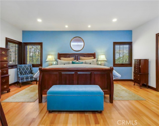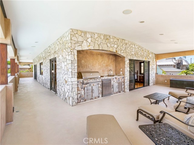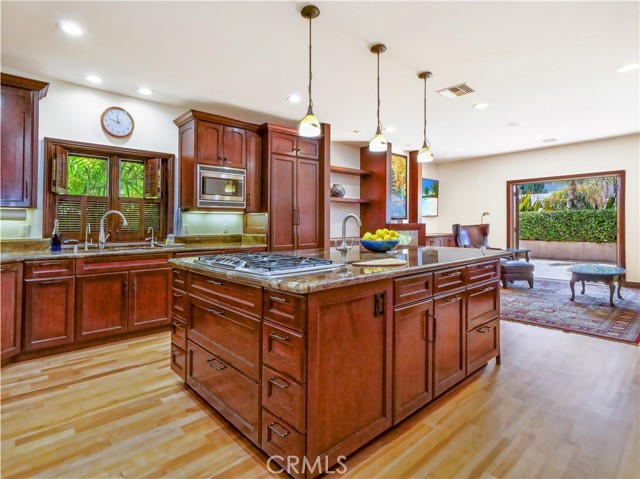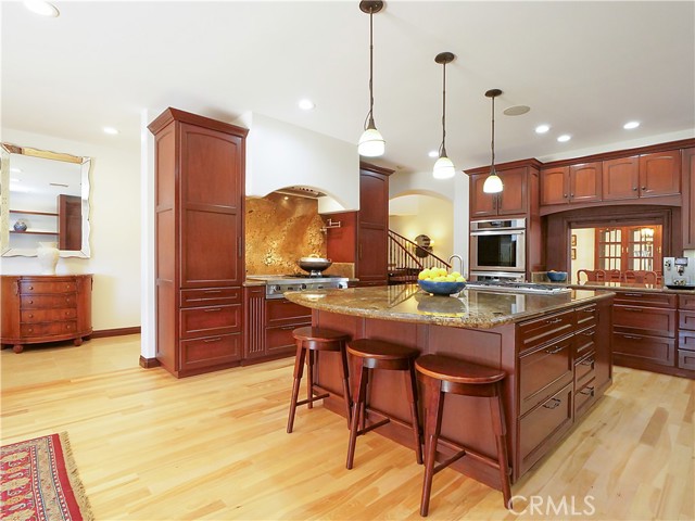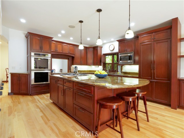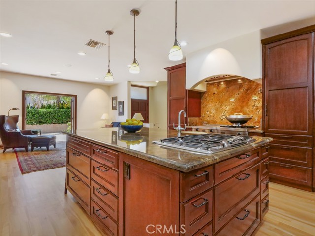 Gorgeous custom-built home with great views of DTLA, the Harbor, and even some Palos Verdes Peninsula and ocean views! This is an entertainer's delight with almost 1200 sq ft of lanai decks wrapping around the second level for views and outdoor living including an outdoor kitchen with, a built-in grill, refrigerator, and sink! This 3808 sq ft has 4 bedrooms all ensuite with 3 bedrooms (including primary) downstairs, while one bedroom is upstairs with a spacious family room and fireplace. Enter through the keyless pad front door into the lovely entry that leads to a great room with a fireplace and French doors that lead to the front courtyard and water fountain. Enjoy the Chef's kitchen with Viking and Thermador appliances (and much more!), and a pass-through opening to the formal dining room with French doors! There is a spacious primary suite and office adjacent. Included downstairs are a water feature, laundry room, and attached 2-car garage. Easy access to the backyard that has plenty of sitting area, a lava pit fireplace and water feature, and many fruit trees; avocado, lime, lemon, peach, orange, and apricot! Amenities are too many to list in this well-maintained home. This is a must see home with a well-thought-out floor plan!