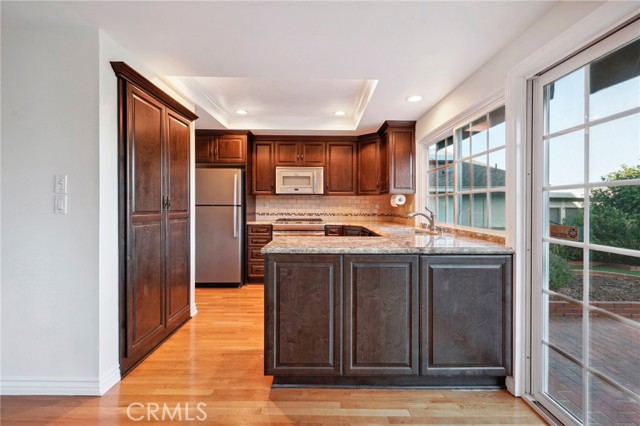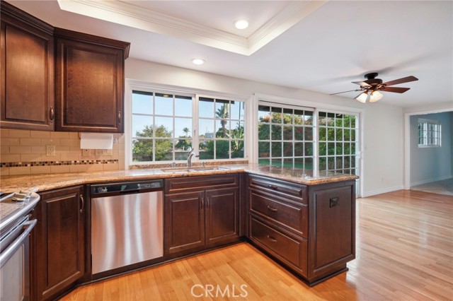 Curb appeal GEM in West Torrance, just a stones throw from Redondo Beach and blocks to the Pacific Ocean and all that it has to offer! This Beautiful home with pride of ownership and its first time on the market in over 50 years is a true find! From the moment you walk in, you'll be struck by the sweeping Cathedral Ceilings in the formal living room with cozy fireplace and open formal Dining room that flows easily into the updated kitchen. In the kitchen, you'll find beautiful granite counter tops, custom cabinetry, Stainless Steel appliances and a lovely view of your sprawling back yard. On the other side of the kitchen, you will find an open and inviting Family room that flows into your fabulous grassy back yard with a top view of the neighborhood and so much potential. Big enough to add a pool, or just enjoy your lush back yard! Downstairs you will also find your first bedroom....perfect for a guest room, office or multi generational bedroom steps from your updated full bathroom. Also downstairs you will find a laundry room that connects to your attached 2 car garage with newly epoxied floors and plenty of space for storage. Head upstairs to find your remaining 3 bedrooms, including 2 more bathrooms. One attached to bedroom 3 and 4 and your double door entry to your Primary Suite with a birds eye view of your gorgeous back yard, neighborhood views, Dual closets and en suite bathroom with built in Vanity. This Traditional floor plan home is perfectly situated on the border of South Redondo and is walking distance to the beach, restaurants and shops. Let's not forget about the Award Winning West Torrance schools which you are also in walking distance too! Don't delay....spend our Indian Summer in your new home perfect for entertaining, barbequing with friends and family!