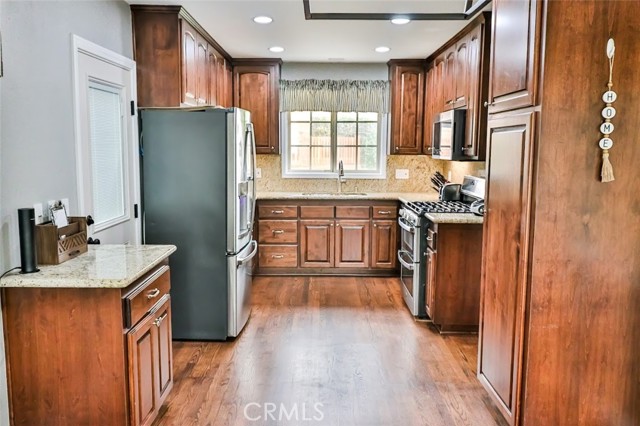 This home was completely rebuilt as new in 2001. There are no add ons. Since then the home has been fully remodeled and looks absolutely stunning. Located on a very quiet street in "Torrance Gardens" it features great curb appeal and has an interior that is quite spectacular. There are so many newer features: the newest just completed in April 2023 is the front lawn and landscaping. Also interior painting April 2023. Smoke alarms and CO detectors, thermostat and door hardware are 2023. The kitchen cabinets and countertops are 2015 with GE Profile appliances from 2021. Both bathrooms were redone in 2019. The fireplace is made of stone with a walnut mantle and hearth and was completed in 2022. Roof, gutters and fascia boards are 2021, exterior paint and lighting 2021, termite tenting was done in April 2021. The front door, side security door and screen are from 2022. The electrical system is upgraded to include 220 volts for the spa and extra circuits for Holiday Lighting. The carpet is newer. The wood floors were re stained in 2022. The water heater is tankless giving added storage space. There is an individual laundry room inside complete with a laundry tub. The home has 3 bedrooms and 2 baths with ceiling fans in all bedrooms. The backyard has a fort/playhouse and spa/Jacuzzi as well as 2 sheds in very good condition. There is a newer forced air heating system with a 2023 thermostat. The home is located close to the Torrance library, parks and sports centers, the Torrance Plunge and Armstrong Entertainment center. Don't miss the Video Tour and also the Virtual Tour.