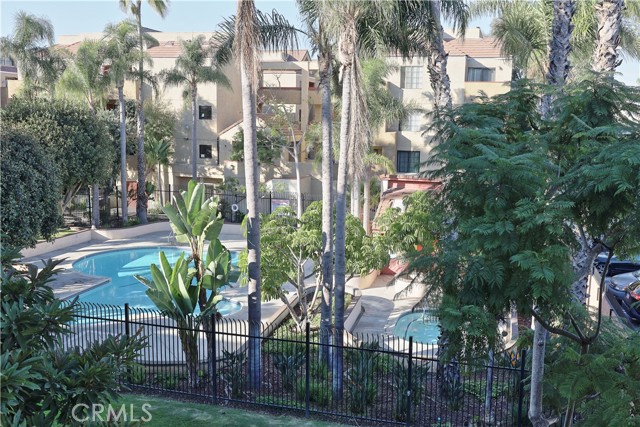 Welcome to this lovely corner unit with a view of interior courtyard filled with mature trees and greenery. The condo features 2 bedrooms, 2 bathrooms. The spacious living room with access to a large balcony with exterior closet/storage. The open kitchen and dining area with a wet bar offer for family gatherings and entertaining. Interior stackable washer and dryer bring the convenience of home laundry. 2 parking spots in secured parking garage assigned to the unit. The Harbor Manor complex includes secured gated entry, elevators, a community pool and spa, conveniently located by Harbor UCLA Medical Center, the freeway, shopping, and restaurants.