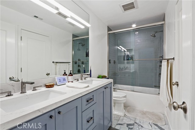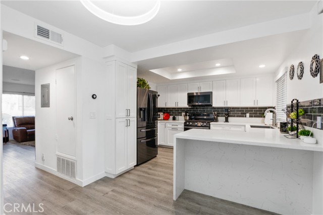 Welcome to unit 107 of the Harbor Knolls community in Torrance. This meticulously designed property boasts 2 bedrooms and 1.5 baths, offering a comfortable and stylish living space. No expense was spared in the renovation of this home, featuring waterproof vinyl floors throughout, a state-of-the-art whole house speaker system, recessed lighting, and double pane windows throughout, just to name a few. The main level showcases a spacious living room, a kitchen with captivating sleek quartz counters, new white shaker cabinets and drawers, a stainless-steel sink with a touchless faucet, and high-end Samsung appliances, perfect for the culinary enthusiast. Last but not least, a convenient half bath which has been tastefully remodeled with new floors, new vanity, mirror and toilet. On the second level you will find the master bedroom with an en-suite bathroom, also fully remodeled with a double vanity, marble floors, and a tiled shower with modern finishes. Each bedroom features closets with custom built ins and soft close drawers, along with their own private patios. But wait! There’s more! Central HVAC was installed in 2019 along with a new electrical panel. This condo offers the convenience of two side-by-side assigned parking spaces, ensuring hassle-free parking. The complex itself consists of 39 units and offers an array of amenities including a sparkling swimming pool, jacuzzi, BBQ area, and a lush grassy space for relaxation. With no pet or rental restrictions, this property provides flexibility and freedom for homeowners. The monthly HOA dues of $422 cover not only the maintenance of the complex but also include water, trash, and sewer services. This property is located one block from Harbor UCLA Medical Center, perfect for a Nurse or employee looking to live close to work. And if all that isn’t enough, the 110 freeway is located within less than 1 mile, along with a nearby In-N-Out, Chick-fil-A and Chicken Maison. Don’t miss this one!
