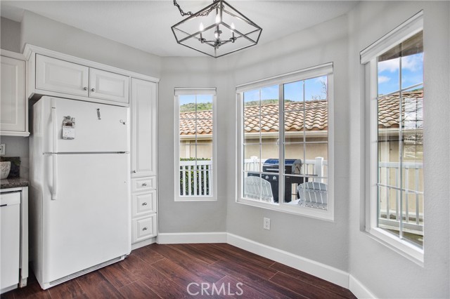 This charming condo has been thoughtfully remodeled with dual pane windows, porcelain wood-look tile flooring, and a galley kitchen with granite counters. The primary suite has an upgraded vanity and walk-in shower with a walk-in closet in the room. Out front is a large patio, perfect for entertaining or enjoying the view. Nestled at the end of the complex next to an open green belt, this unit offers a tranquil retreat, while a detached garage provides ample space for both your vehicle and adventure gear. Embrace the community amenities, including a park, pool, and clubhouse with a workout room. Just minutes from everyday shopping and world-class beaches, all within a top-rated school district, this is Southern California living at its finest. Welcome home to tranquility and adventure in Hidden Ridge.
