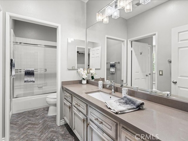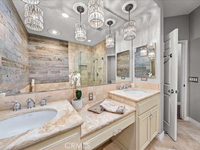 Stunning Upgraded Valencia Home Located in the Prestigious Gated Community of Avignon! Feels like you walked into a Model Home in Paso Robles Winery area! As you stroll through the Beautiful Iron Gate with Grapevine design to the Stylish Rustic Front Door you feel like you are at a Vineyard! As you enter this Turnkey home you are drawn to the Fabulous Open Floor Plan with the Gorgeous Stone & Wood Flooring. This Elegant home Boasts 2 Master Bedrooms (One Downstairs), Huge Loft (Could Be 3rd Bedroom), 3 Upgraded Bathrooms, Tech Center, Approx. 2,000 Sq. Ft. Large Living Room with High Ceilings, Chandelier and Exquisite Romantic Fireplace, Sliding Doors leading to the Private Covered Patio. Perfect for Entertaining! Spectacular Upgraded Gourmet Kitchen with Quartz Counter Tops, Stunning Backsplash, Stainless Steel Appliances, Double Convection Oven, 5 Burner Cook Top, Farmhouse Sink & Breakfast Nook. Dual Sided Custom Built-in Buffet with pull out drawers. Formal Dining Area with Stunning Designer Crystal Chandelier. Large Downstairs Master Suite with Separate Sitting Area, Romantic Fireplace, Custom Built-Ins, Plantation Shutters & French Door that leads you to the Private Backyard. Luxurious Master Bathroom with Dual Sinks, Separate Tub & Walk-In Shower. Feels like you are at a Spa! As you meander up the Impressive Wrought Iron Staircase you are drawn to the Huge Loft (Could Be 3rd Bedroom), Tech Center & Large Second Master Bedroom. Features include Travertine & Wood Flooring, Large Indoor Laundry Room with Rustic Barn Door, Recessed Lighting, Plantation Shutters, Ceiling Fans, Designer Lighting, French Doors & Professionally Painted. Enchanting Backyard with Covered Patio & Custom Sitting Area overlooking the Lush Private Greenbelt. Feels like you are Relaxing in a Napa Resort! 2 Car Garage with Epoxy-like Flooring. Thousands of dollars in upgrades. No expense left unturned at this home. Walking Distance to Valencia Town Center, Shopping & Restaurants. Close to the Valencia Country Club & Golf Course, Award Winning Schools and easy freeway access. Avignon Community Amenities include Clubhouse, Pool, Spa, BBQ Area & Fireplace with Sitting Area. No Mello Roos.