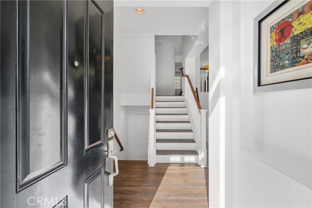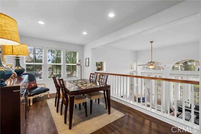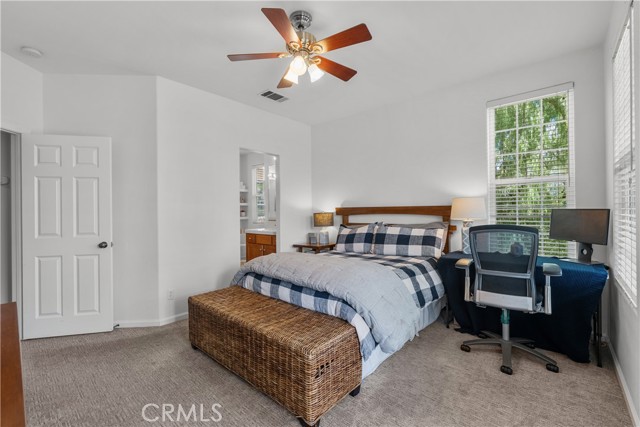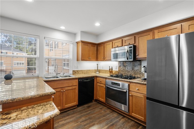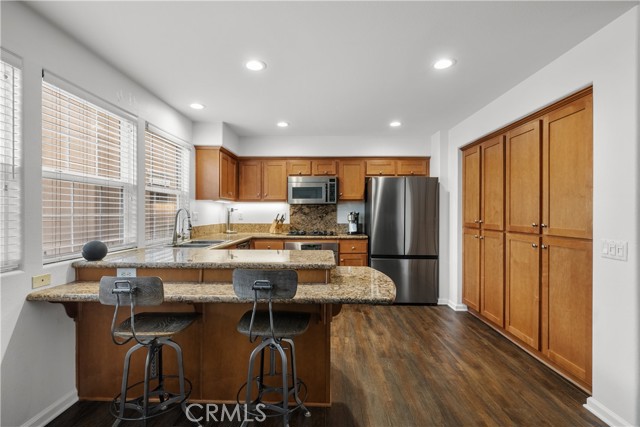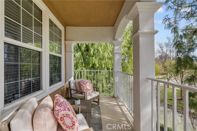 Welcome to Bridgeport Valencia, this stunning townhome offers a prime location and upgraded features. Situated in the sought-after Cabot Bay Bridgeport neighborhood, this end unit boasts three bedrooms, three bathrooms, and a tri-level layout. Inside, you'll find an inviting open floorplan with beautiful flooring, granite stone counters, and a breakfast bar in the kitchen, complete with stainless steel appliances. The kitchen seamlessly flows into the dining area and family room, creating a perfect space for entertaining. Enjoy scenic views from the living room and master bedroom patios, overlooking the greenbelt, water and paseos walkway. This home has been meticulously maintained and upgraded with custom touches throughout, ensuring a clean and stylish living environment. With a side-by-side 2-car attached garage, convenience is at your fingertips. Residents of Bridgeport can take advantage of a range of amenities, including a clubhouse, sparkling pool, spa, BBQ area, picnic tables, and a walking path around the lake with paddle boats. Plus, this community is conveniently located near award-winning schools, shopping destinations, the town center mall, dining options, paseos, and stunning views. Don't miss out on this incredible opportunity to call Bridgeport Valencia home!