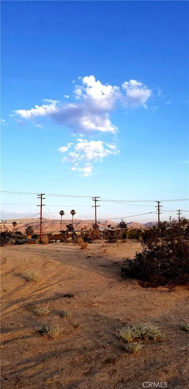 Commercial Corner lot on Adobe Road in the Downtown area of 29 Palms. Heavy traffic flow and great visibility. Sits close to the Historic Plaza and the USMC Military Base as well as the new Turtle Rock Casino and the East Entrance to the Joshua Tree National Park. All utilities are available and has nice views from this elevated spot.