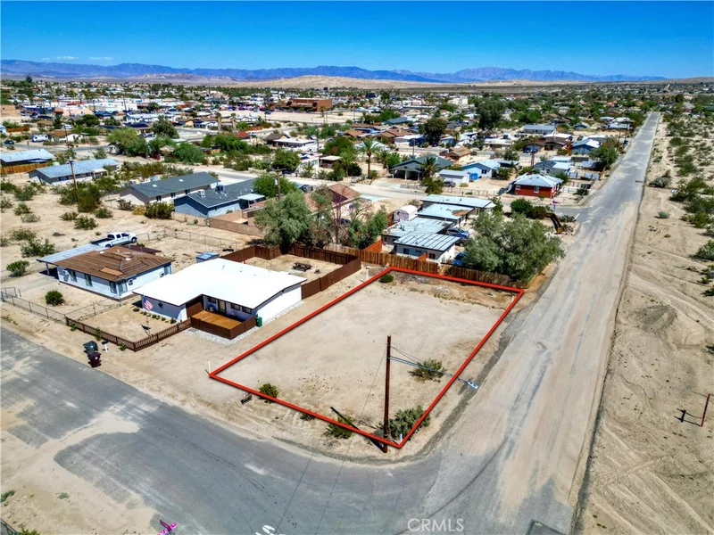 Prime Investment Opportunity in Twentynine Palms! Welcome to this 7,303-square-foot vacant corner lot located in the thriving community of Twentynine Palms, CA. Zoned RM-SP (Specific Plan #4), this parcel offers a unique development opportunity, allowing a minimum entitlement of two units per lot with a net area of 7,200 square feet or greater. This flat and usable lot boasts stunning views of the desert mountains to the south, offering a picturesque backdrop for future developments. Situated near various amenities, this lot is within walking distance of Starbucks, Campbell Hill Bakery, and the local Farmers Market held every Saturday. Nearby are a variety of eateries, including restaurants and fast-food options, as well as banks, the post office, and public transportation. The lot is also conveniently close to the Cultural Center of Twentynine Palms, the Joshua Tree Visitors Center, the North entrance to Joshua Tree National Park, and Tortoise Rock Casino. Adding to the appeal is the upcoming Project Phoenix, currently under construction, which will transform the area with new community features. Highlights include an 11,000-square-foot Community Center with a gymnasium/multipurpose room, a 4,100-square-foot Joshua Tree National Park Cultural and Visitor Center, and a three-block-long Paseo serving businesses along Route 62. Yucca Avenue will be redesigned as an event space for festivals, farmers markets, art shows, car shows, and musical events, complete with a large stage and ample parking, including over 200 new public parking spaces, 150 on-street parking spaces, and accommodations for tour buses and RVs. The area will be enhanced with desert landscaping, ornamental streetlights, benches, and public art, creating a vibrant and inviting streetscape. Don't miss out on this excellent opportunity to invest in the heart of the fast-growing Twentynine Palms community. This affordable lot offers limitless potential for those looking to capitalize on the area's exciting growth and development.