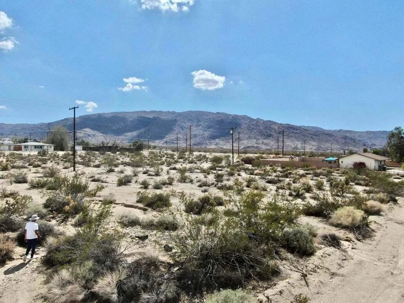Owner may carry! Turn Key lot with utilities and paved road. 11,100 square foot (quarter acre) lot the trendy Hanson Area neighborhood in 29 Palms! Ideal for a developer or long term investor. The Hanson Area is known for its views. Set on a gentle incline offering northern vistas of the Bullion Mtns. To the west are the boulder studded Little San Bernardino Mtns with Joshua Peak. To the east are the Twentynine Palms Mtns. Quiet neighborhood. Close to the 29 Palms Restaurant and Inn, Theatre 29, and the Tortoise Rock Casino. Just down the road is the 29 Palms gate to the Joshua Tree National Monument. About 3 million tourists visit the park annually. Great vacation area. A few miles to the north is downtown 29 Palms with the new Freedom Mall and all amenities. Celebrities, artists and musicians are now calling 29 Palms home more than ever before. Would be great for a designer modern home or go with a prefab manufactured. Two adjacent lots are also for sale. Buyers must contact the city for all questions on building and usage. Buyers must contact the utilities agencies for all questions on utilities. APN: 0624-012-17-0000 Address is not a real address and for marketing purposes only. GPS: 34.12218, -116.0355 Don't Wait! Call Now!