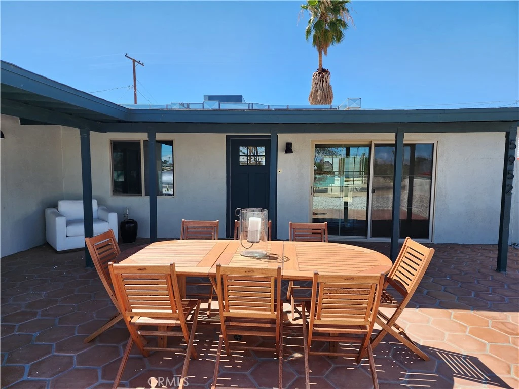 *STR Special -Available May 08th - June 11th for $2,200.00 w/all utilities included & fully furnished* Beautiful remodeled home in Twentynine Palms. Available for One (1) month rental for May 2026. Located 10 minutes away from the Marine base entrance is a fully furnished 3 bedroom + 1 bath home with central AC. This home has a full kitchen, stunning living room with electric fireplace, ceiling fan, and decorative furniture. This home comes fully furnished with a new washer and dryer, refrigerator, range/oven, bunk beds, and 2 queen beds with Smart TVs. Spacious backyard for BBQ, lounging, star gazing or just relaxing in the jacuzzi, hammocks or sun loungers. *Cowboy pool will be installed in April 2026. Utilities included: Electricity, Water, Sewer, Trash and Internet. Tenant must be responsible to turn off all electricity when not home including ceiling fan, lights and A/C unit. Pets not recommended but is negotiable. This home is also 5-10 minutes from the Joshua Tree National Park entrance. Grocery store and restaurants are nearby. Joshua Tree town is approximately 10-15 minutes away. This home is connected to a attached studio that has a private entrance with one friendly peaceful tenant. Studio tenant moves out June 8th. Parking available on driveway. Plenty of street parking for guests. No charging of electric vehicles allowed. Showings are appointment only. Please do not disturb the tenant. Thank you.