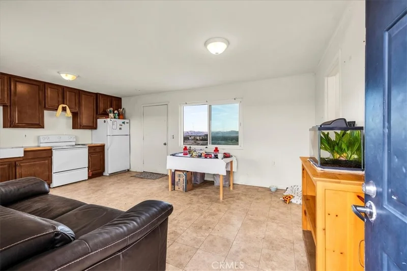 Step onto your own slice of paradise and history with this Original Jackrabbit homestead that is tucked away in a cove on 2.5 acres with panoramic views. Spacious one bedroom, one bathroom that features views of seven mountain peaks, fully tiled tub and shower combo, tile flooring inside the kitchen and wood composite flooring inside the bedroom. The kitchen is inviting with its butcher block counter top, deep porcelain sink and large Milgard windows letting in the expansive scenery, while blocking the deserts UV rays. In the last four years, this Original Jackrabbit homestead has had new Milgard windows, septic tank, water heater, countertops and sink installed. The front yard has been professionally graded and leveled. The stalls are a permanent structure that offers many different uses year round like boarding Horses and other animals like chickens, goats, ducks. This Original Jackrabbit homestead is centrally positioned 20 minutes outside of Joshua Tree National Park, Joshua Tree, Yucca Valley, Twentynine Palms and a short drive to Indian Cove, multiple campgrounds and Joshua Tree Village.