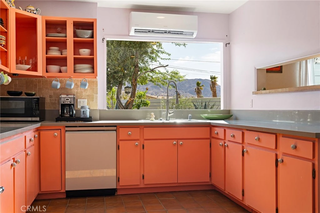 HISTORIC 1938 ADOBE: This architecturally significant property – featured in Historic Adobe Homes magazine – offers timeless desert appeal. Located within walking distance to the iconic 29 Palms Inn, Kitchen in the Desert and downtown Twentynine Palms, providing a rare opportunity to own an authentic adobe home in one of the town’s most desirable settings. Situated on a .51-acre triangular parcel uniquely positioned so the point of the lot faces directly toward the iconic Oasis of Mara, creating a setting that feels deeply connected to this remarkable natural landmark. Set against the mountains in a prime Twentynine Palms location, the property enjoys beautiful back views of the mature palm groves, with towering palms, mature trees, cactus gardens, and a peaceful breeze from the nearby natural spring pond adding to the sense of a true desert oasis. The home is surrounded by vacant lots on two sides, enhancing the sense of seclusion and making the parcel feel unusually expansive and private. This 3-bedroom, 2-bath home spans 1,491 square feet, with a layout that creates an easy connection to the outdoors, as most rooms have direct access outside, blending indoor and outdoor living. Recent improvements include new windows, a new water heater, a new kitchen counter, and new ductless mini-split heating/cooling system for efficient year-round comfort. The home also features a wood-burning fireplace for ambiance, a front porch facing open desert vistas and lush gardens for morning or evening beverages, in addition to an outdoor shower, private backyard, 4-car garage, and a 220V hookup ready for a future hot tub.