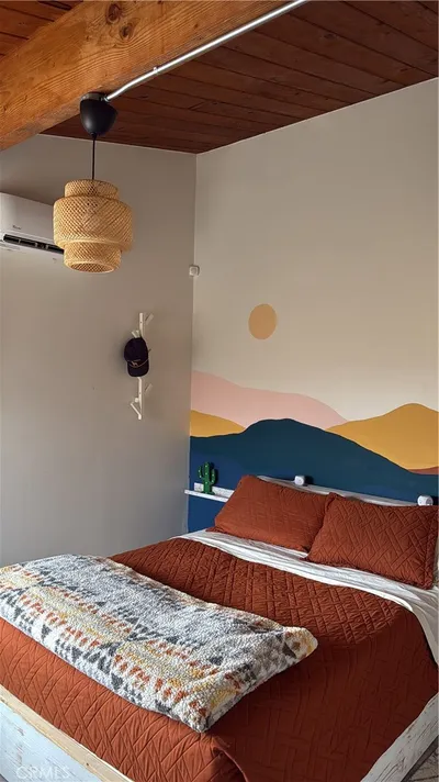 Location, Location, Location! This charming 1,058 sq. ft. Mid-Century Modern home offers 3 bedrooms and 1 bath on an oversized lot, blending character, comfort, and desert appeal. Inside, you'll find exposed wood beams, an updated kitchen with butcher block countertops, luxury vinyl flooring, and efficient split heating & air systems. The cozy yet open layout highlights the home’s natural light and relaxed desert vibe. Step outside to a cute, private backyard—perfect for entertaining. Enjoy a covered patio, spacious storage shed, and a fully fenced, secure yard with room for RV or boat parking. Located on Datura Ave, this home sits in one of 29 Palms’ best-kept secrets—just minutes from the low-wait back gate, and walking distance to the revitalized Downtown for dining, shops, and live music. Whether you're seeking a weekend escape from LA or OC, a base for hiking and exploring Joshua Tree National Park, or a spot to enjoy the Milky Way night skies, this property delivers. Close to the 29 Palms USMC Base, it’s also ideal as a short-term rental, home base for travelers, or a full-time residence.