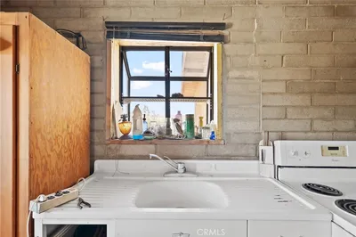 Opportunity knocks in the high desert! Set on a sprawling 5-acre corner lot just minutes from the entrance to the Marine Corps base, this 2-bedroom, 1-bath home is brimming with potential and character. Built in 1956, the home exudes vintage desert charm with vaulted ceilings, classic block and brick construction, and a striking rock archway that beautifully frames the transition from the living room to the kitchen. The cozy home is ready for a creative vision and some much-needed TLC to bring it back to life. Home has city water and power. Step outside and imagine the possibilities—surrounded by concrete patios, the home offers a covered front porch perfect for morning coffee or stargazing at night. A detached two-car garage provides ample storage or workshop potential, and the separate block-built shed adds even more flexibility. With its south-facing orientation and wide-open desert views, the property is ripe for transformation—whether you're dreaming of a rustic desert retreat, an income-generating rental, or a long-term hold. Located in the heart of the Morongo Basin, a region celebrated for its surreal landscapes, vibrant art scene, and close proximity to Joshua Tree National Park, this property offers both seclusion and accessibility. Bring your tools, your imagination, and your ambition—this is your chance to invest in the magic of the Mojave.