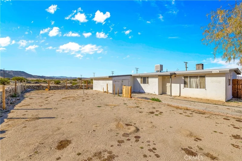 Affordable Mid-Century Modern 3-Bedroom Fixer on a Large Corner Lot in 29 Palms! This charming mid-century modern home offers an incredible opportunity for buyers looking for value and potential. Located on a large corner lot, this 3-bedroom, 1-bath home features classic architectural elements and a functional layout ready for your finishing touches. As you enter, you’ll be greeted by a warm and inviting living area, highlighted by tongue-and-groove ceilings and a stylish corner fireplace that serves as the centerpiece of the room. The dining area is well-sized, and the kitchen offers a practical layout with good flow and usability. The bathroom is centrally located, making it easily accessible for guests and all three bedrooms. Each bedroom is adequate in size, with potential to personalize and update to your taste. Additional features include an attached garage, a fully fenced backyard, and a large concrete patio—perfect for outdoor living. From the backyard, enjoy stunning desert and mountain views, adding to the peaceful ambiance of the property. This home is being sold as is, where is, making it a fantastic opportunity for investors, first-time buyers looking for a project, or anyone seeking to add value in a growing area. Don’t miss out on this affordable opportunity—schedule your private showing today!