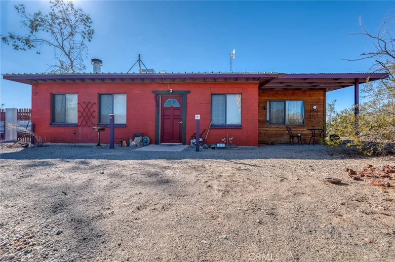 Welcome to The Kaleidoscope Den, a vibrant desert retreat on 5 secluded acres in the heart of Wonder Valley, just 25 minutes from the north entrance of Joshua Tree National Park. This one-of-a-kind property combines the charm of midcentury design with modern touches, featuring intricate mosaic tile work, an eclectic mix of vintage and modern furnishings, and artistic touches throughout. The oversized, illuminated cowboy pool is perfect for cooling off by day or stargazing at night, while the outdoor fire pit and multiple lounging areas invite you to relax under the desert skies. Inside, enjoy spacious living areas enhanced with plush seating, custom mood lighting. Home being sold turnkey minus a few items. Each bedroom offers maximum comfort with queen-sized Nectar mattresses, a range of pillow options, and individual AC units, ensuring every guest feels at home. Each bedroom has its own separate entrance, providing extra privacy. The fully stocked kitchen and cozy 19th-century Mayflower fireplace make for an inviting atmosphere on cooler evenings. Outside, mature palms, eucalyptus, and rustic art installations create a picturesque backdrop for dining and socializing. Beyond the property, Wonder Valley offers easy access to a variety of attractions. Head to Joshua Tree National Park for iconic hikes, breathtaking rock formations, and incredible vistas, or explore the nearby Glass Outhouse Art Gallery and Noah Purifoy Outdoor Museum. For those looking to unwind, local restaurants and quirky shops are just a short drive away in 29 Palms. Whether you're seeking a tranquil escape, a groovy weekend, or an unforgettable desert adventure, The Kaleidoscope Den is your private oasis amidst the Mojave landscape.