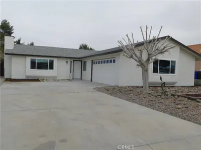 Freshly painted interior, this 2-bedroom home features a 1-year-old roof, offering a clean slate for your vision which can be used for a rental, a weekend get away, or maybe a business location. There is plenty of parking for RV's, and a lot of room for large work vehicles. It's situated on nearly an acre of flat, fully fenced, usable land, zoned for commercial use. There is plenty of room for an ADU, workshop, or additional units. Looking for a 3rd bedroom? The attached garage is perfectly positioned for a simple conversion. Priced to sell and ready for its next chapter. Don't miss this High Desert opportunity!