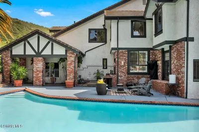 This stunning Agoura Hills residence at 30075 Triunfo Dr. offers the perfect blend of comfort, privacy, and breathtaking natural beauty. The home is ideal for those seeking both convenience and a serene lifestyle. Featuring 3/4 spacious bedrooms, 4 1/2 well-appointed bathrooms, and built in 1990, the property showcases timeless design and thoughtful craftsmanship. Large windows and outdoor spaces capture sweeping views of the Santa Monica Mountains, creating a peaceful backdrop for everyday living. Whether you're relaxing indoors or enjoying the scenery outside, this home delivers a rare combination of elegance and California charm. Convenient & private one bedroom/office on entry level. Quality craftsmanship thru-out. Designer kitchen with Viking appliances-large island -free flowing floor-plan. Kitchen opens into a large separate dining room & family room with rich custom built-ins. Large office/game room with easy access to the family room. All new custom fit Anderson windows in 2020. New 3 zone heating & air in 2023. Custom window treatment-sweeping custom staircase leads to 3 large bedrooms. Master suite with walk-in closet & private dressing area. Secondary bedrooms are well appointed .