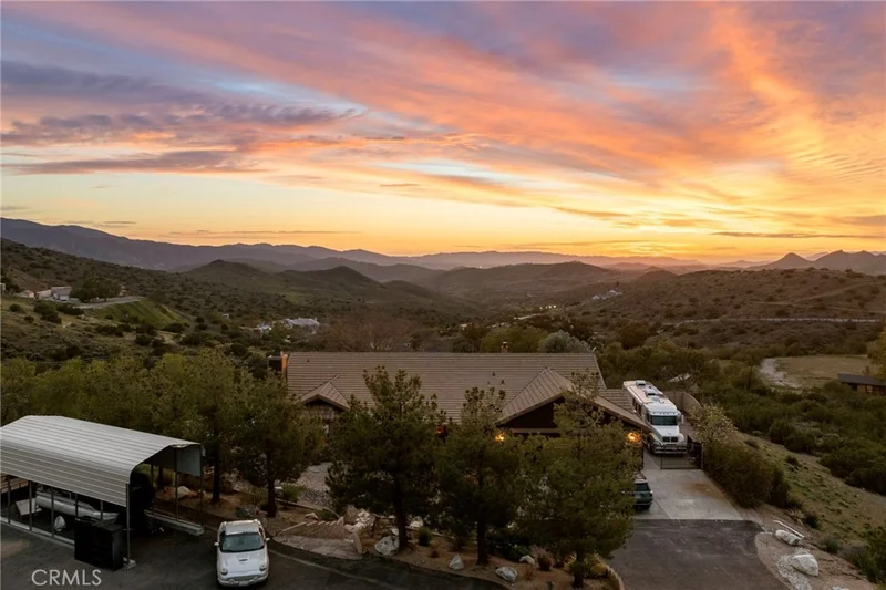 Spacious single-story 3,000 sq ft view home in beautiful Agua Dulce, CA, situated on over 6 private acres, offering tranquility, open space, and scenic surroundings. This home features a functional 3 bedroom and 3 full bathroom open layout with generous living areas filled with natural light, a gourmet kitchen equipped with Viking appliances, and ample storage. A dedicated game room provides flexible space for recreation or entertaining, while well-sized bedrooms offer comfort and versatility for family or guests. Cozy up by the fireplace or pellet stove for added warmth and ambiance. Recent updates include a newer roof, newer HVAC system including 3 main rooms served by a new mini split to offset cooling costs, and septic system and upgraded bathrooms for added peace of mind. The entertainer’s backyard is designed for relaxation and gatherings, featuring an in-ground pool and spa, expansive grounds, and breathtaking views. A large patio with fireplace showcasing the amazing sunset views. The property also includes a 3-car garage with ample RV and boat parking, perfect for hobbyists or outdoor enthusiasts. Conveniently located with easy access to shopping, dining, and schools, this home offers the ideal combination of privacy, luxury, and functionality. A rare opportunity to own a view property with acreage, resort-style amenities, and everything needed for comfortable, elegant living. Come for a visit. Stay for a lifetime. Welcome Home!